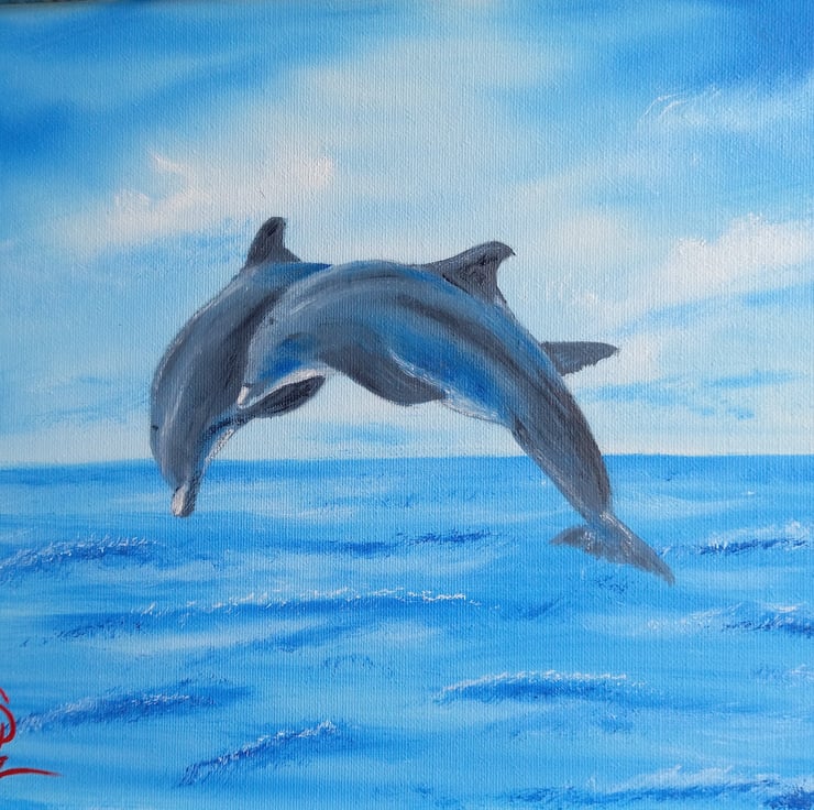Two beautiful Dolphins, leaping from the sea.