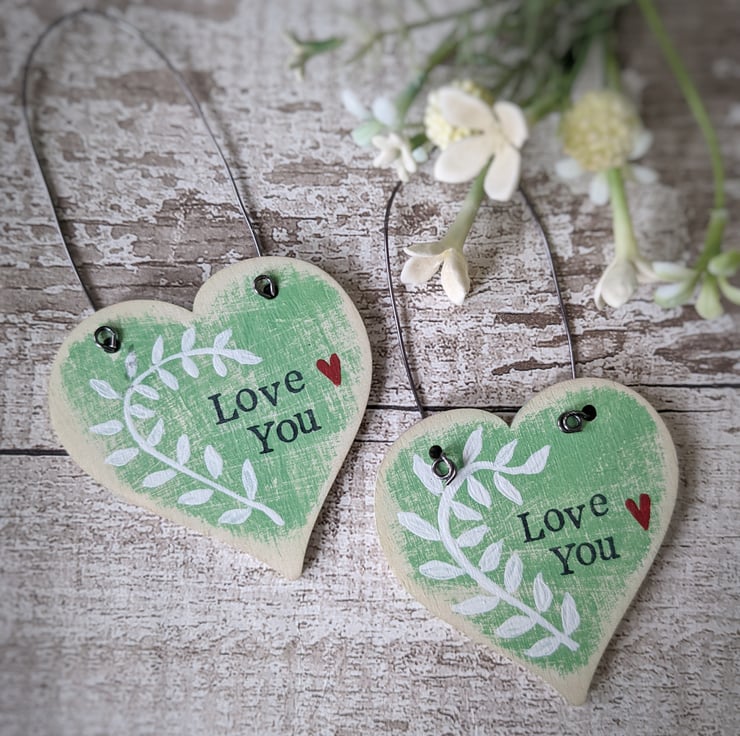 These little birchwood hearts are all individually hand painted, and stamped with words of love!