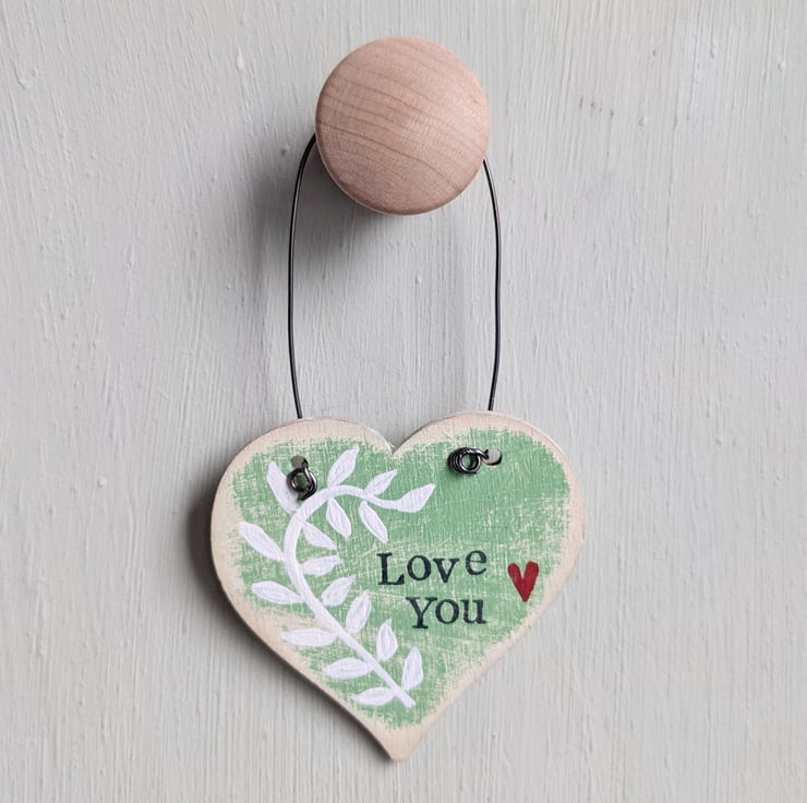 A sweet little wooden painted heart to hang in your home.