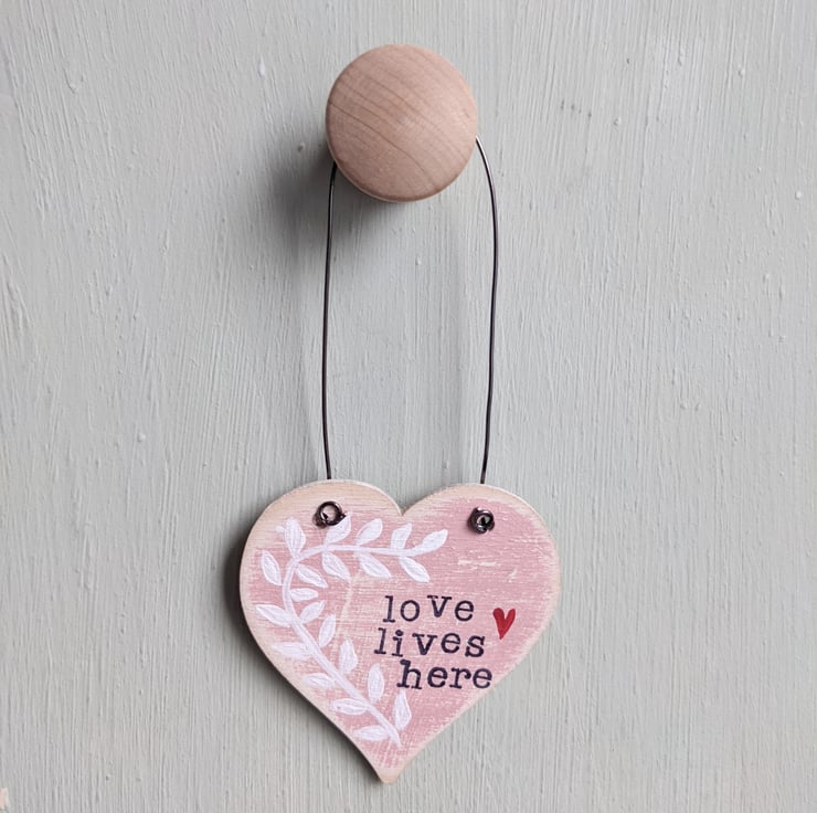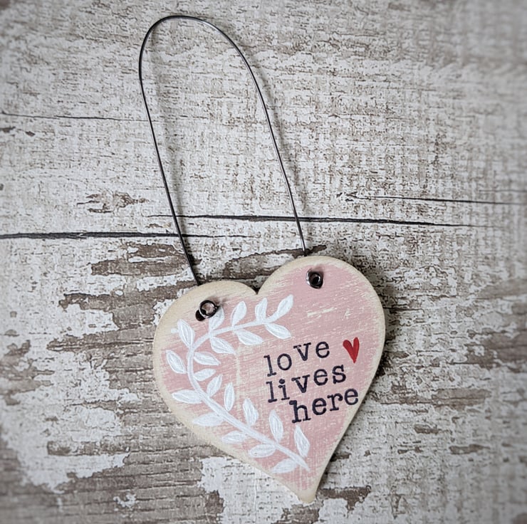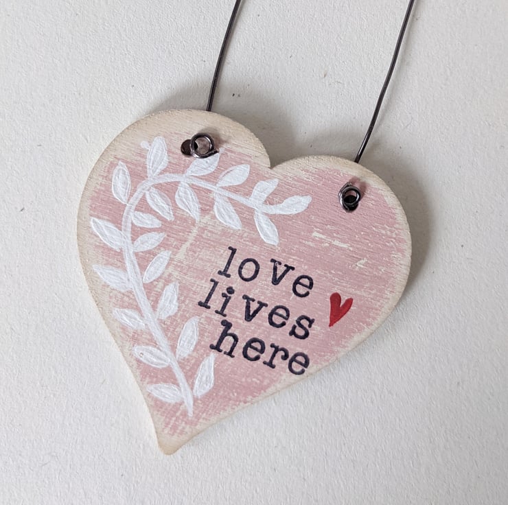 Hand Painted Wooden Heart Hanging Decoration 'Love Lives Here'