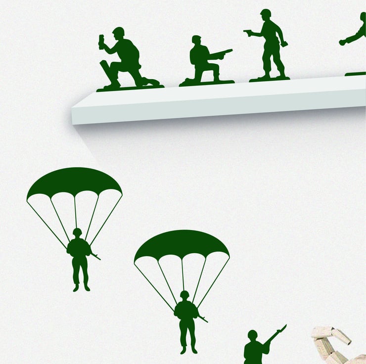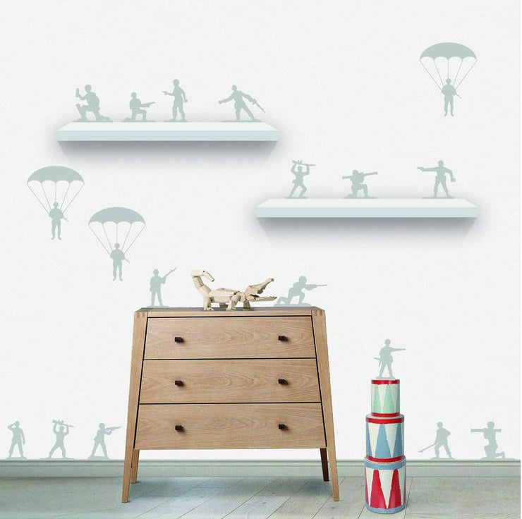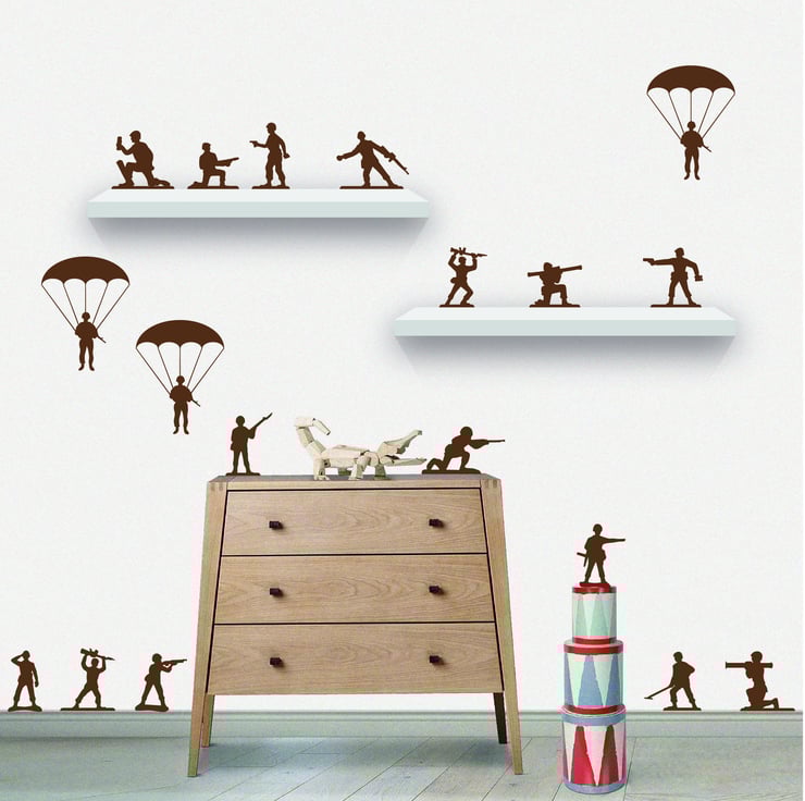x22 Army Toy Soldier wall Decals for shelves, skirting boards, above doors, or anywhere in your child's bedroom.