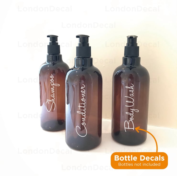 3x Decals (1x 'Shampoo', 1x 'Conditioner' and 1x 'Body Wash')