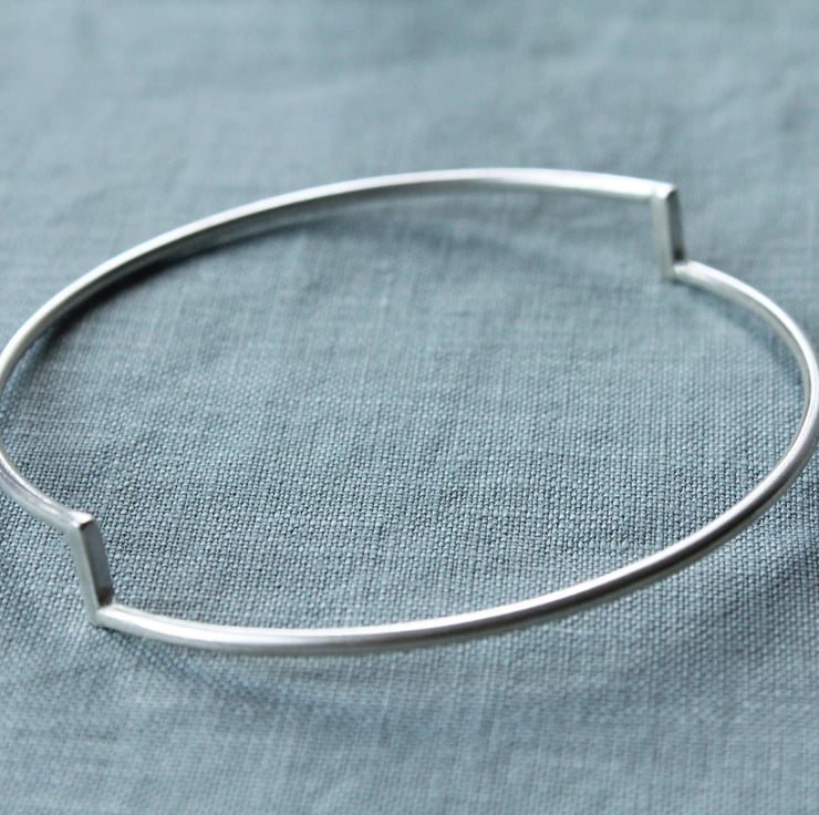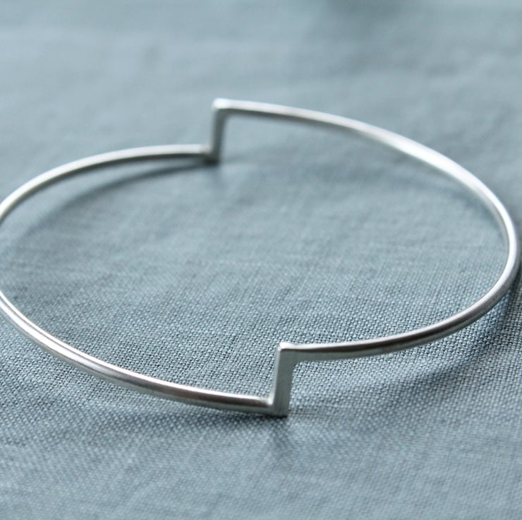 Double Stepped Silver Bangle,