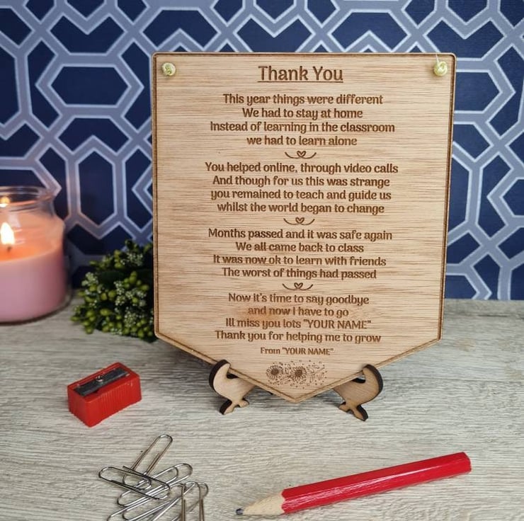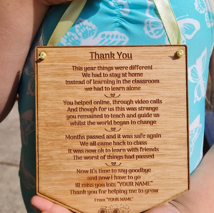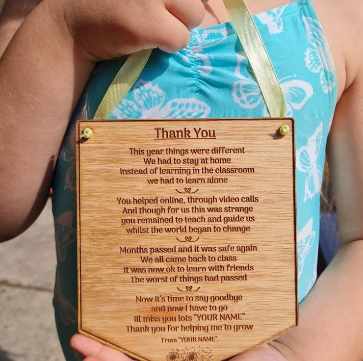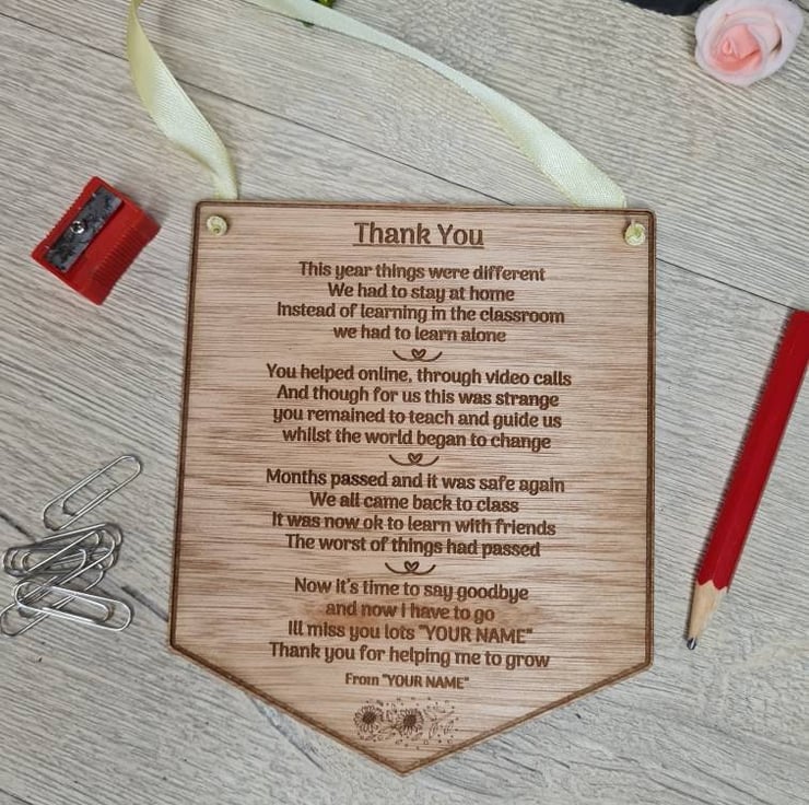 Surprise your teacher with this beautiful gift. Personalise with your teachers name and name of child. Comes complete with yellow ribbon