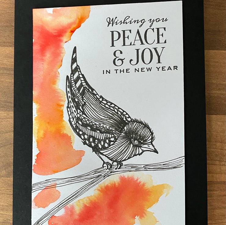Each bird was stamped onto Mixed Media card with the sentiment in archival ink. Each bird was then doodled differently using the Zentangle technique with a black archival ink pen. For two of the designs a branch has been added for the birds to sit on.