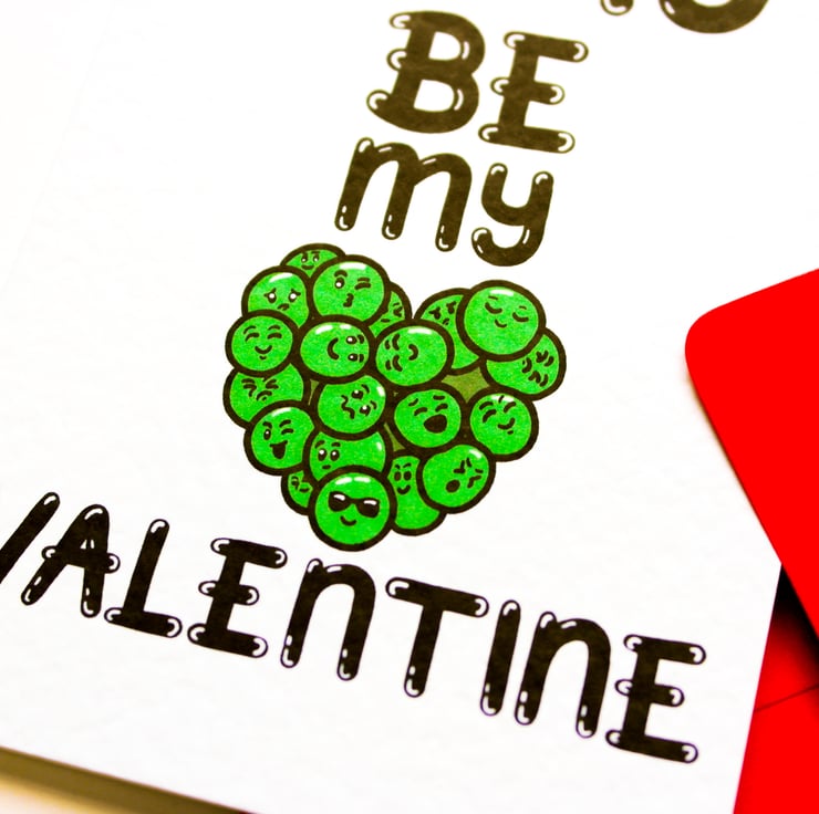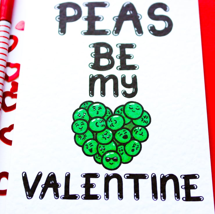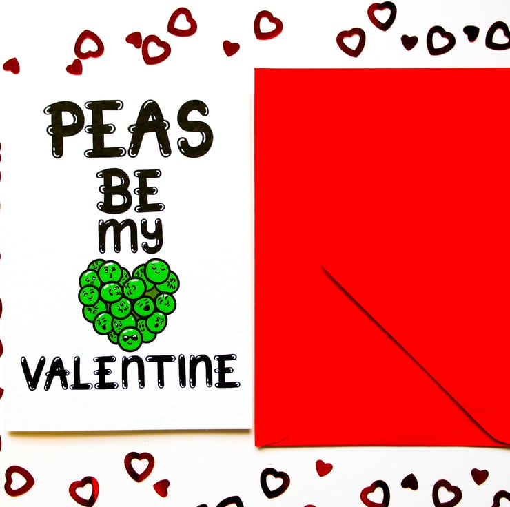 A unique Peas Valentine's Day card. Ideal for your Wife, Husband, Boyfriend, Girlfriend or anyone you want to be your Valentine!