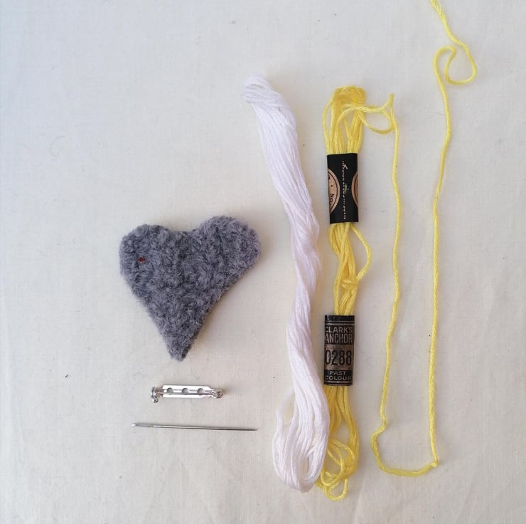 Handmade textile heart brooch made from felted knitted wool with a brooch pin stitched securely to the back.