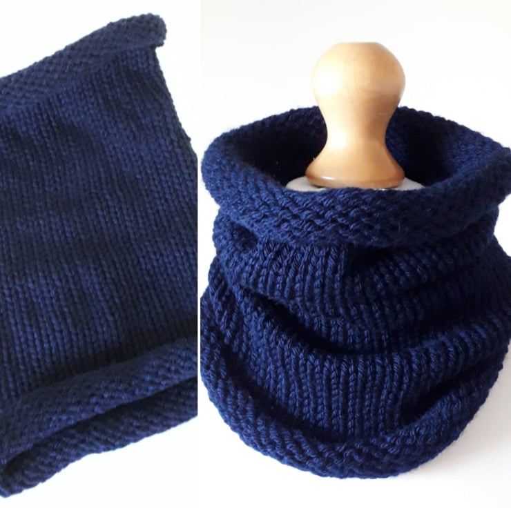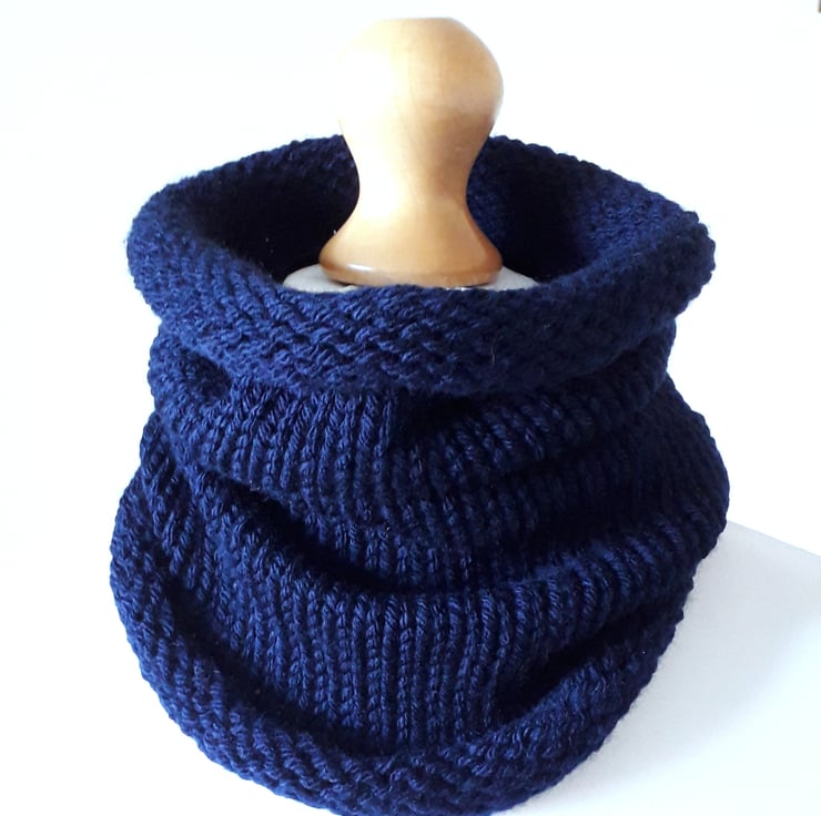 This neck warmer has been knitted from beautifully soft dark blue acrylic yarn.