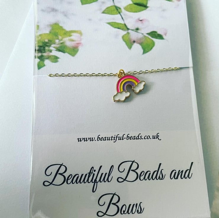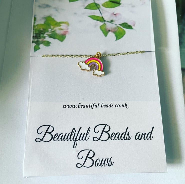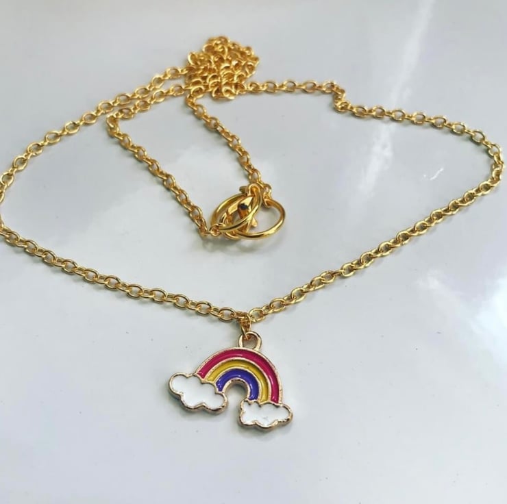 16 inch goldtone necklace with rainbow pendant