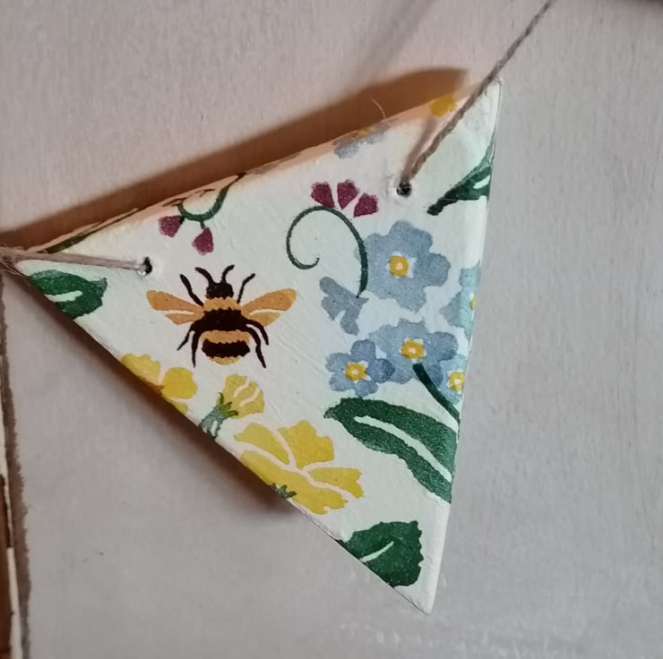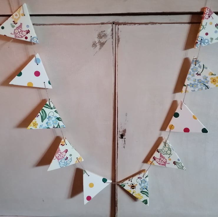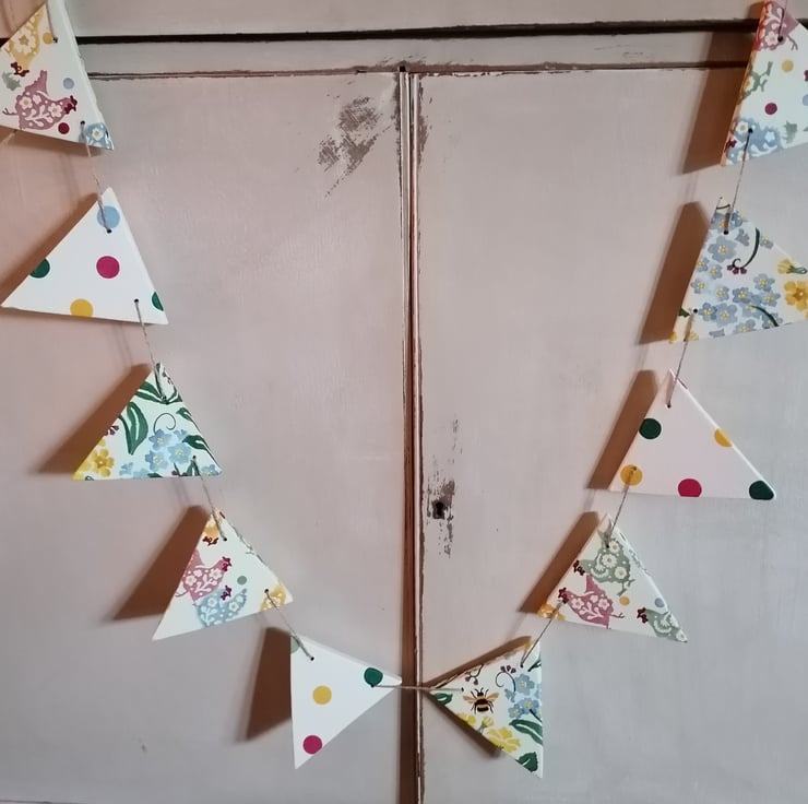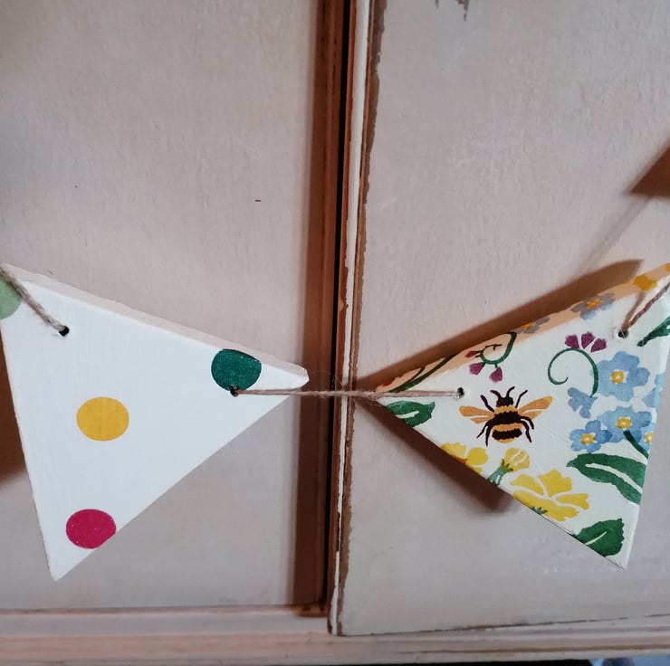 Beautiful Wooden Bunting x 10 Flags. Hand Cut, Painted and Decorated by me in my Workshop.