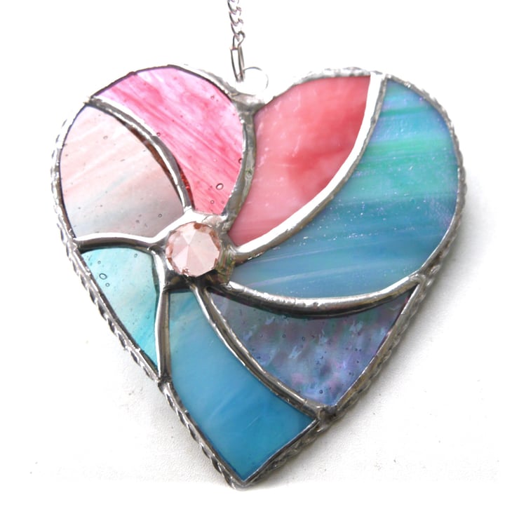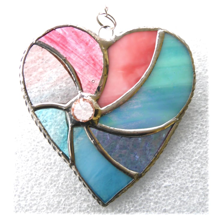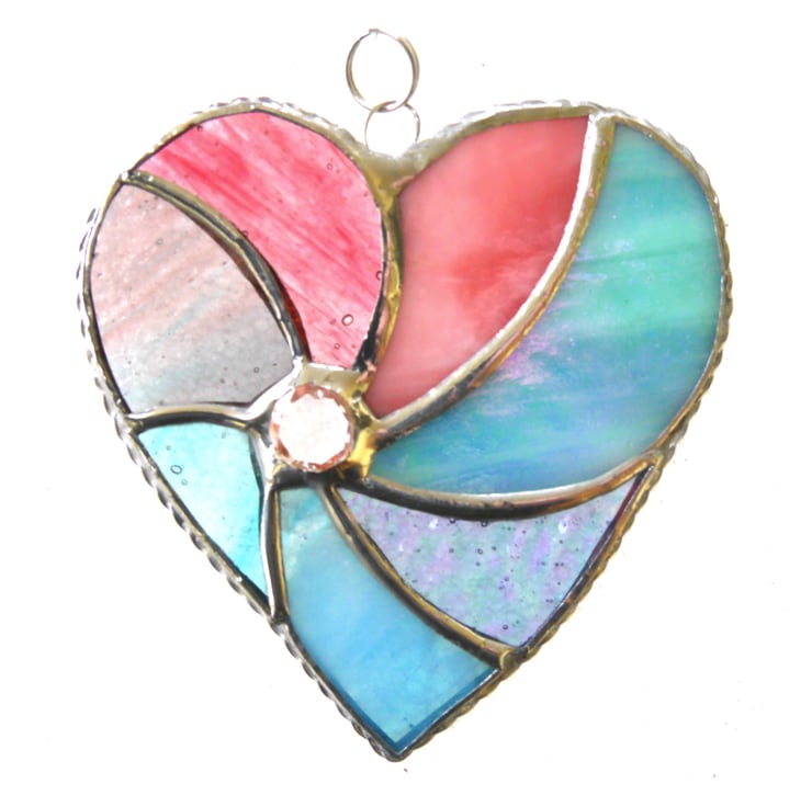 I've made the heart from 7 types and colours of glass, all prettily pastel and I've set them in a swirl round a sparkling crystal.
