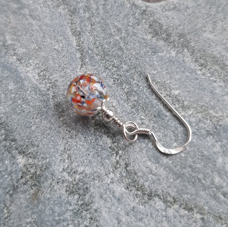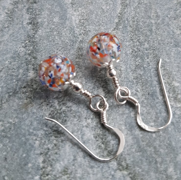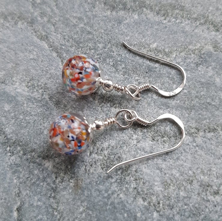 Sterling silver earrings made with multi coloured venetian murano glass which has a little aventurina, the aventurina gives them a little bit of a sparkle.