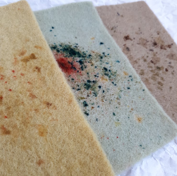 100% wool felt sheets in four shades hand-dyed in using natural materials. The speckles are in colours that vary, yet complement each other.