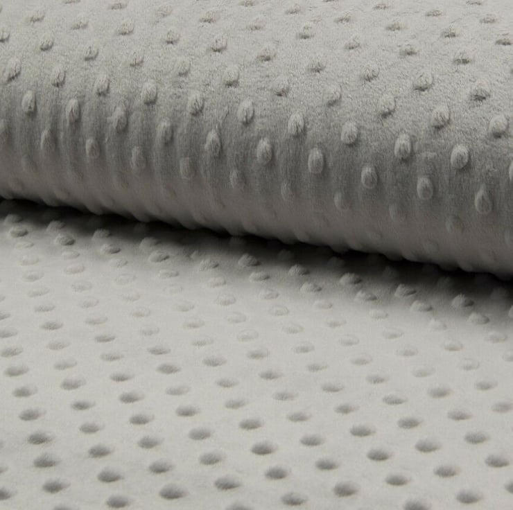 A beautifully soft ' Cuddlesoft ' plush minky fleece fabric with tactile raised spots in light silver grey.
