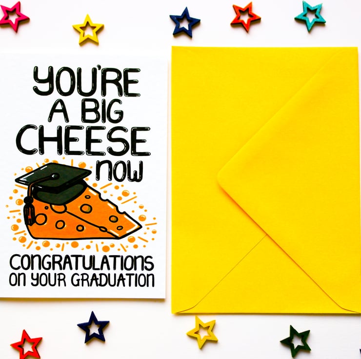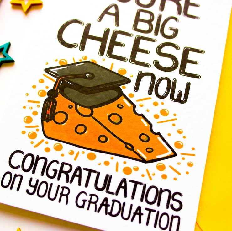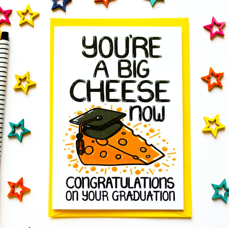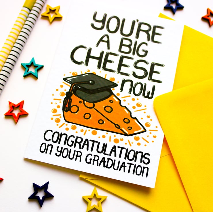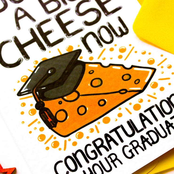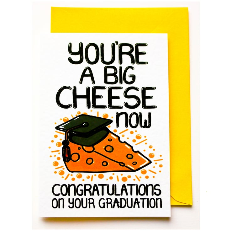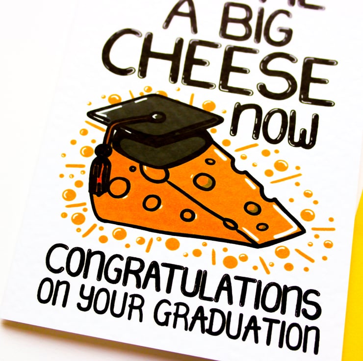 Greeting on front: YOU'RE A BIG CHEESE NOW CONGRATULATIONS ON YOUR GRADUATION