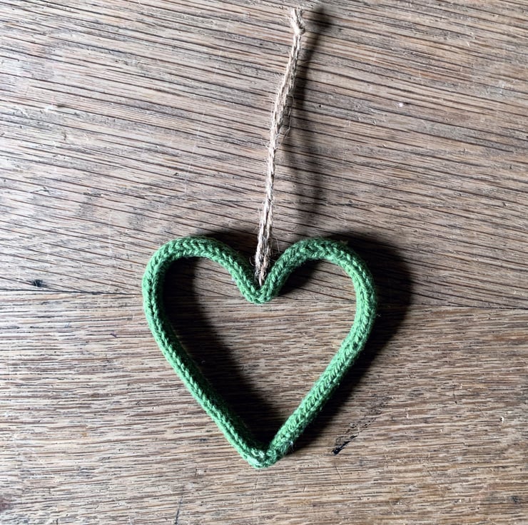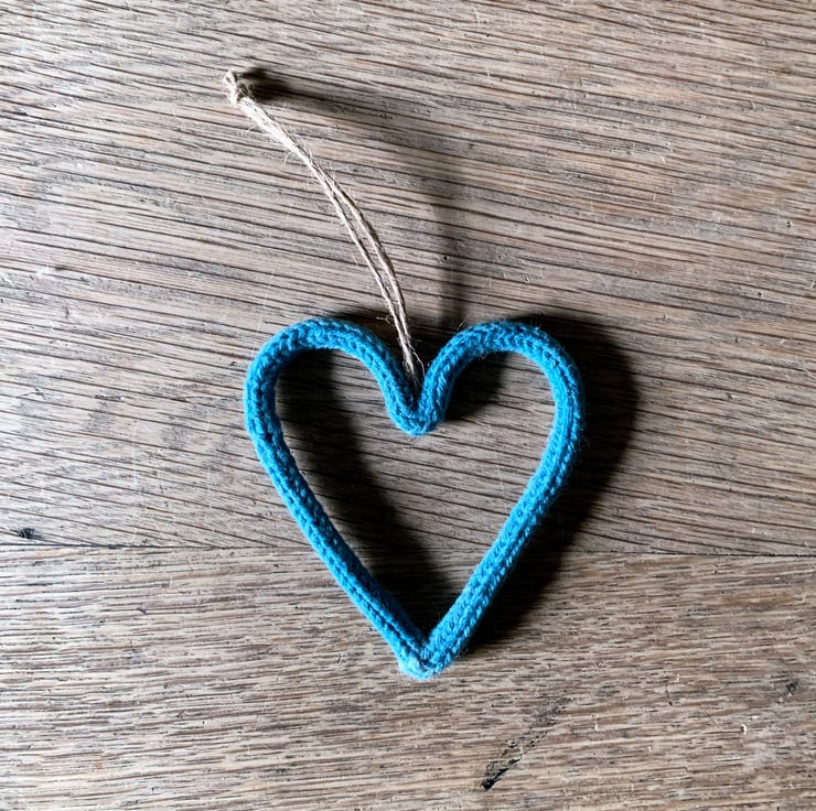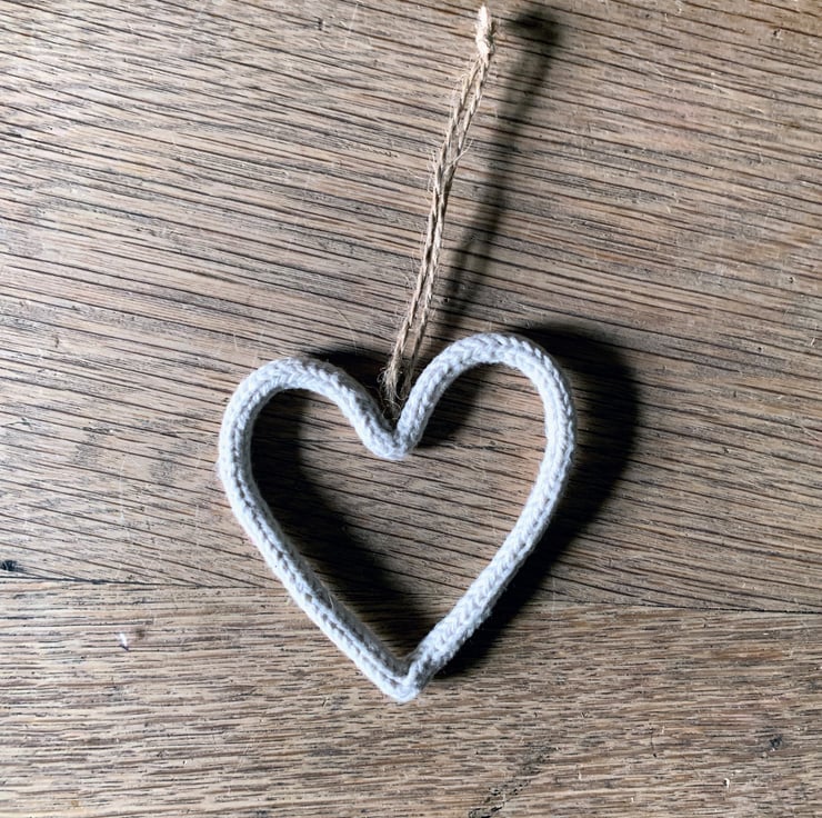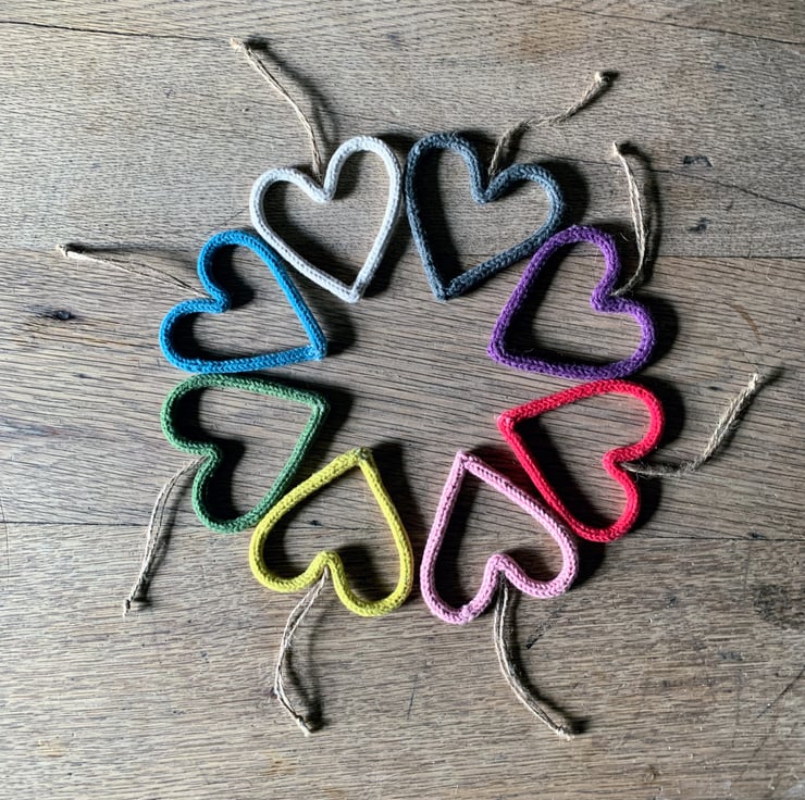 Each cute little heart is made from knitted cotton string, threaded with wire and sculpted by me at my old oak dining table.