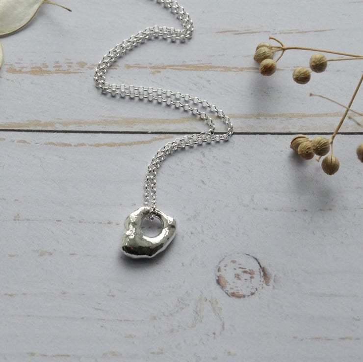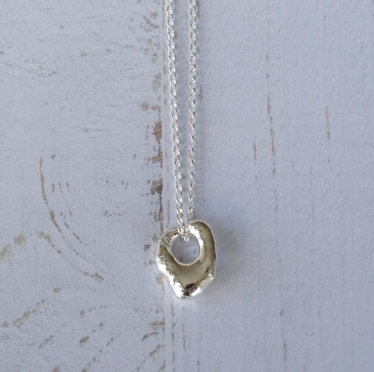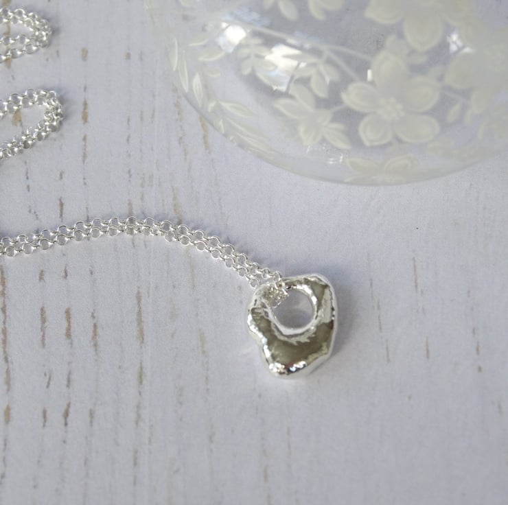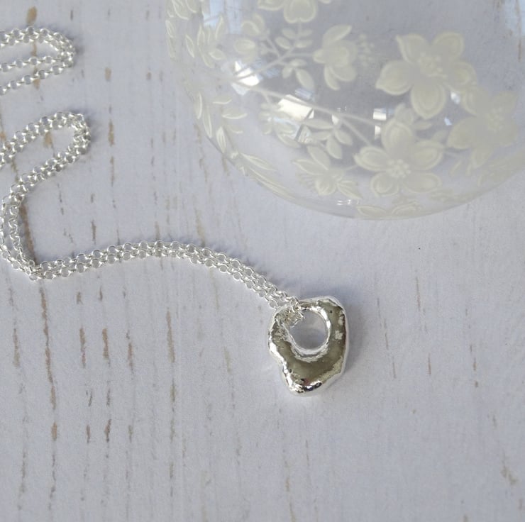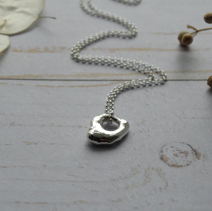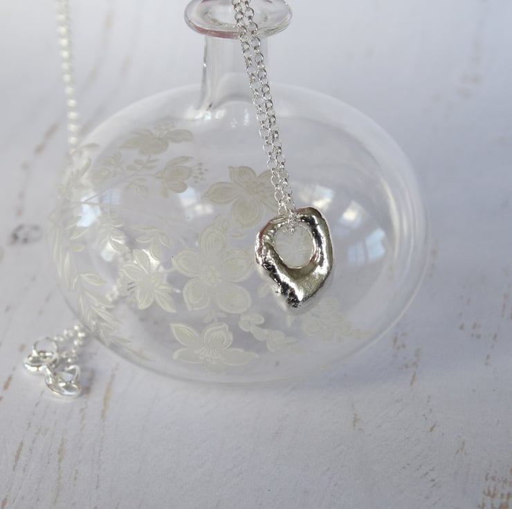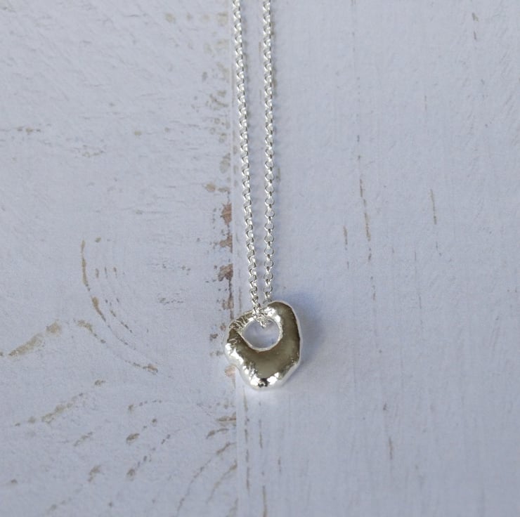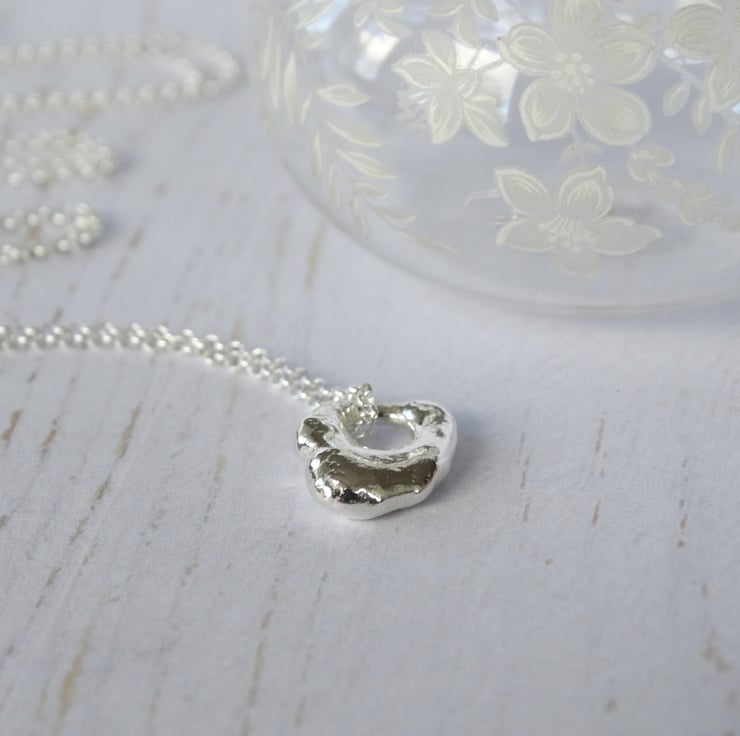 This sweet little charm has been formed from off-cuts of Eco Silver - nothing in my workshop goes to waste! The silver is heated until it starts to take shape. Each pendant comes out differently, so no two are ever the same (you will receive the one pictured).