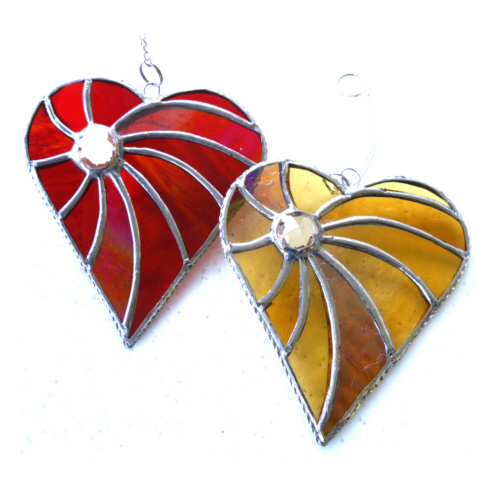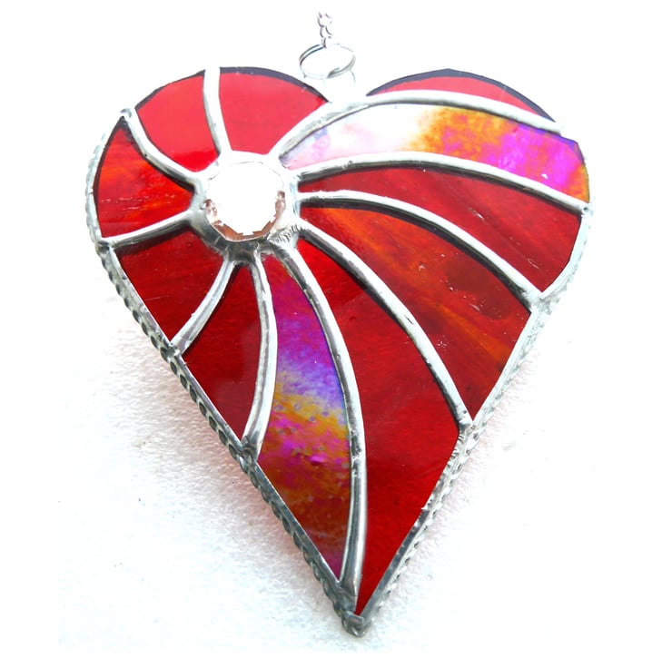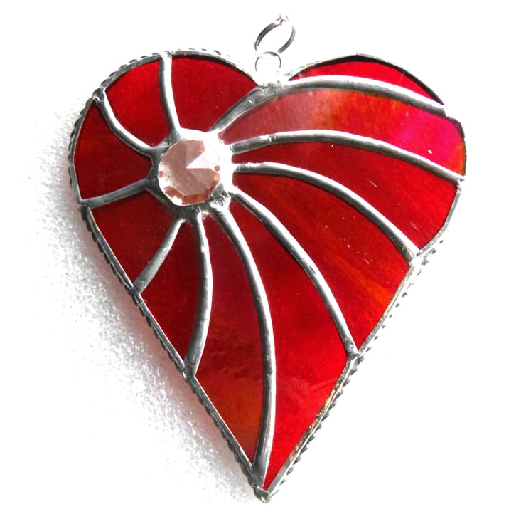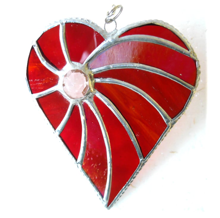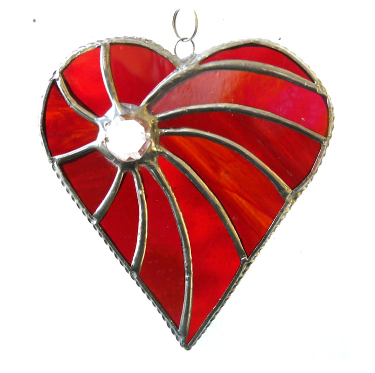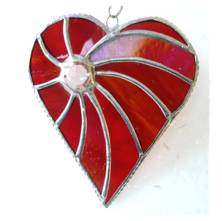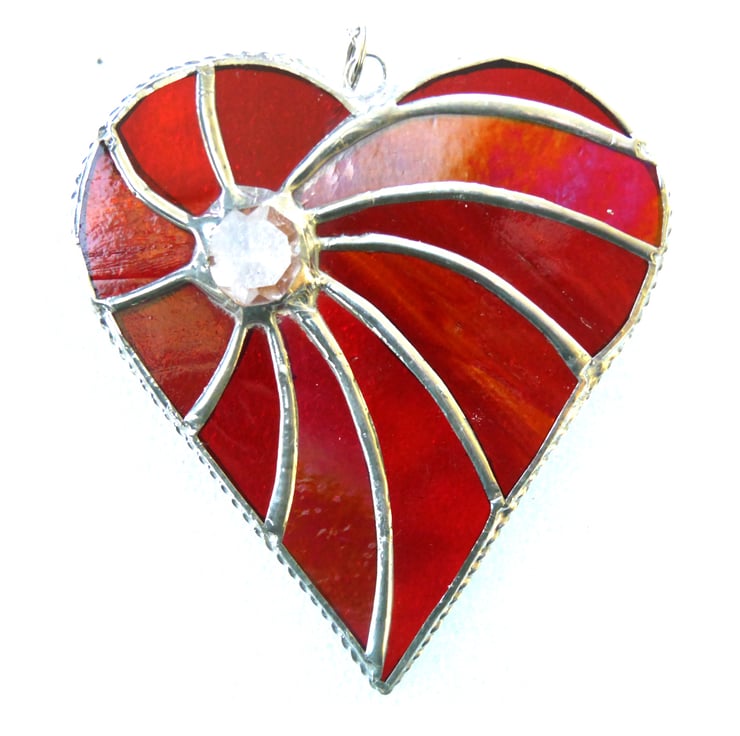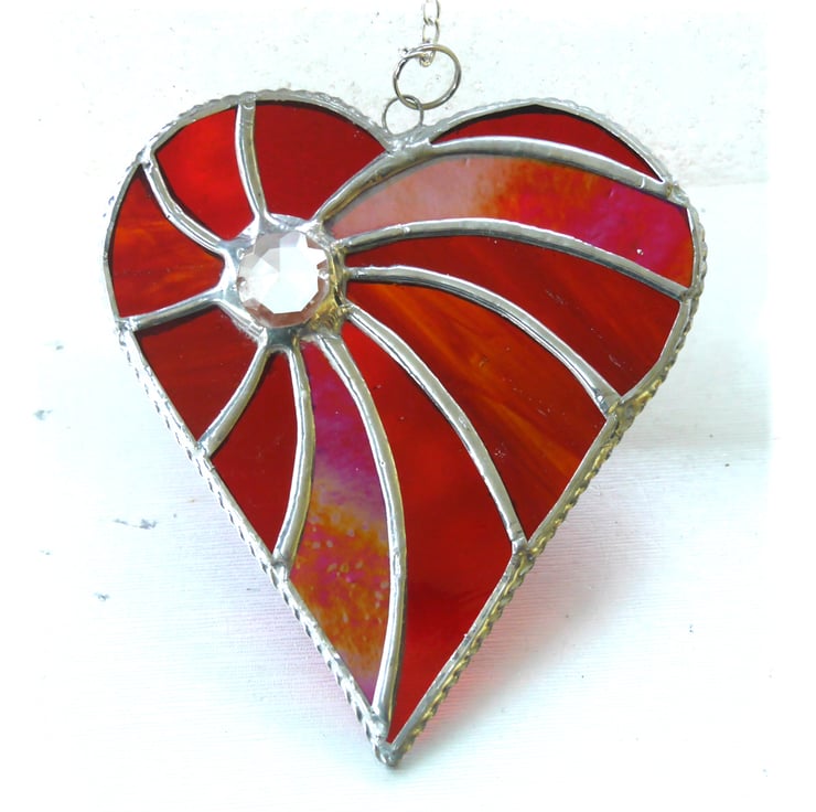I've made the heart from 5 different types and shades of red glass swirling out from a lovely gsparkling crystal.