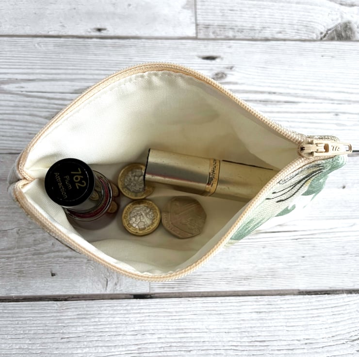 This large coin purse has plenty of room for bank cards and keys as well as cash. It is also large enough to be used as a small make up bag or jewellery pouch. With its delightful swallowtail butterfly and pretty lily, it would make a lovely gift, particularly for anyone who loves nature.
