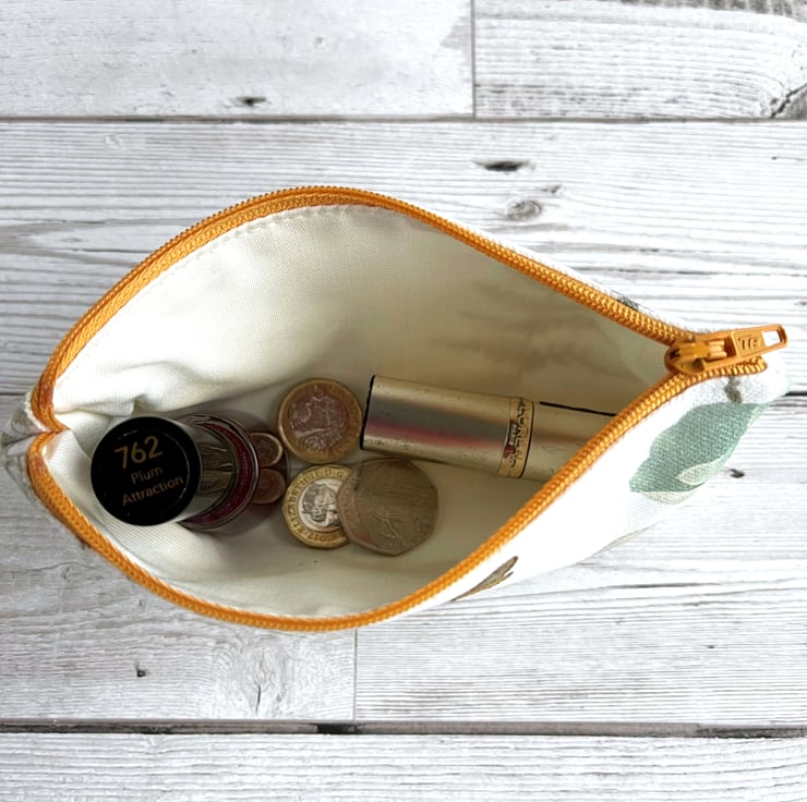 This large coin purse has plenty of room for bank cards and keys as well as cash. It is also large enough to be used as a small make up bag or jewellery pouch. With its delightful botanical print, it would make a lovely small gift, particularly for someone who loves wildlife and nature.