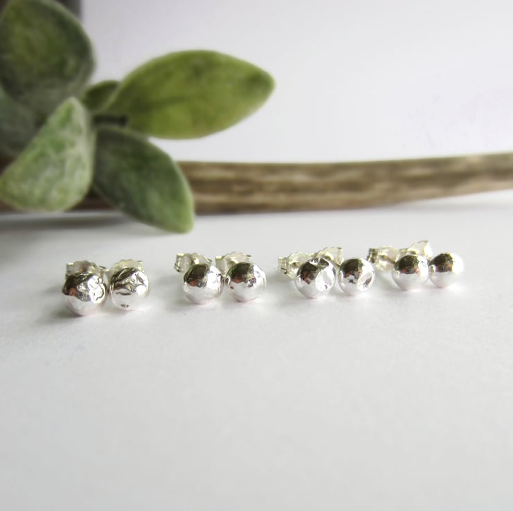 These pretty, organically textured ball stud earrings are handmade by melting down all the offcuts and scrap sterling silver which tends to accumulate in my studio.