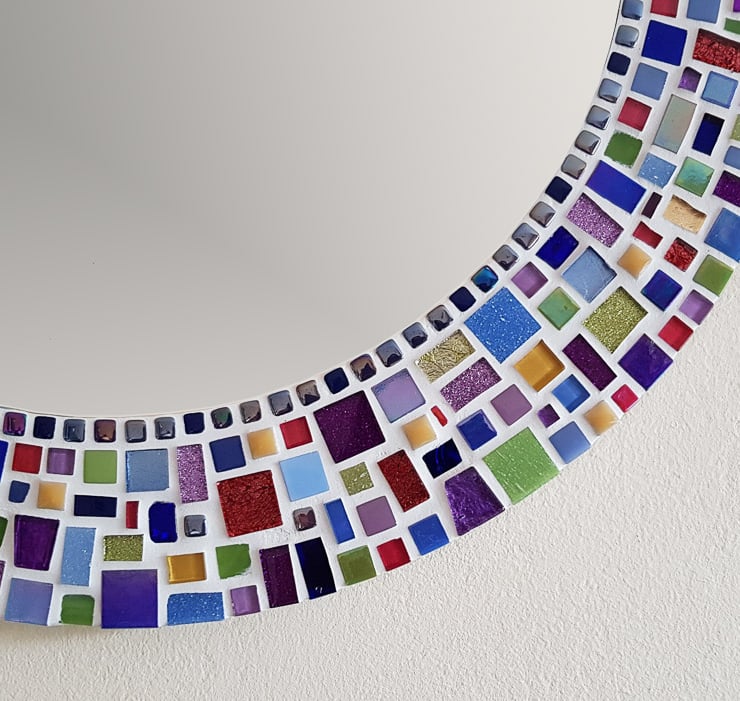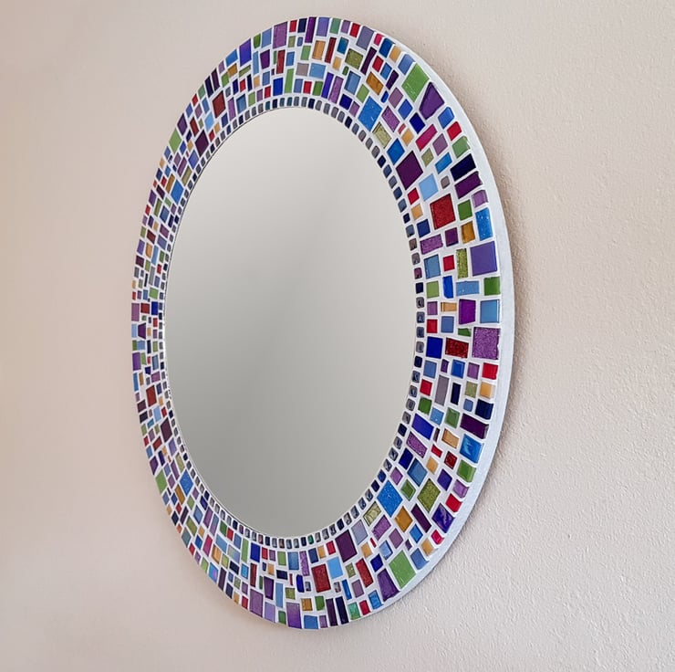 Mirrors don't come any more eye-catching than this! Bursting with bright rainbow colours and tiles with sparkly, glittery and iridescent finishes, this mirror is designed to bring light, colour and most of all, a smile. It's art meets functionality and uniquely handmade to order just for you.