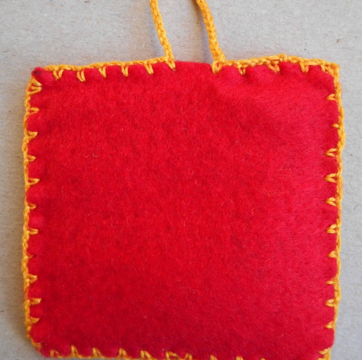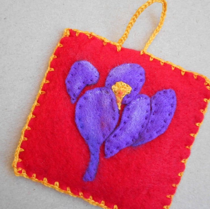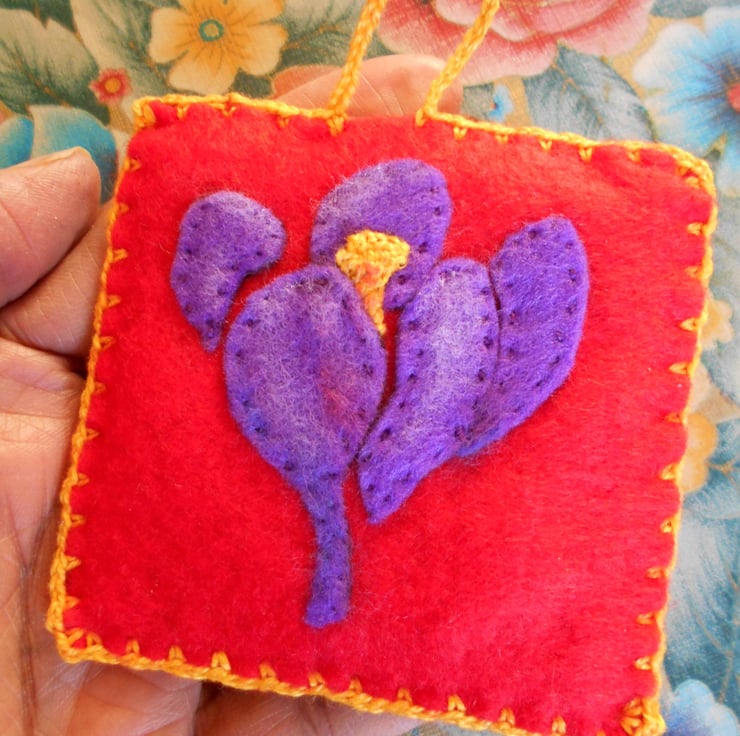 I crocheted the stamen using orange yarn and added a touch of red to enhance it. This home decor is completely handcut and handsewn.
