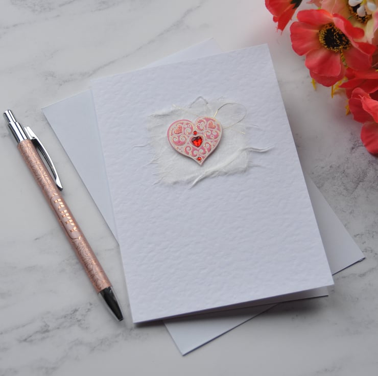 Elegant Love Heart Card Valentines Free Post Any Occasion Handmade 3D Luxury