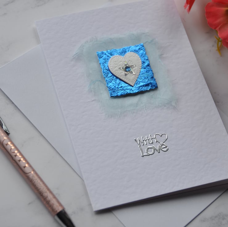 I have made the card with a high quality luxury hammered texture with a clean, contemporary, and sophisticated design. The design is finished with a greeting that has been silver foiled and says With Love.
