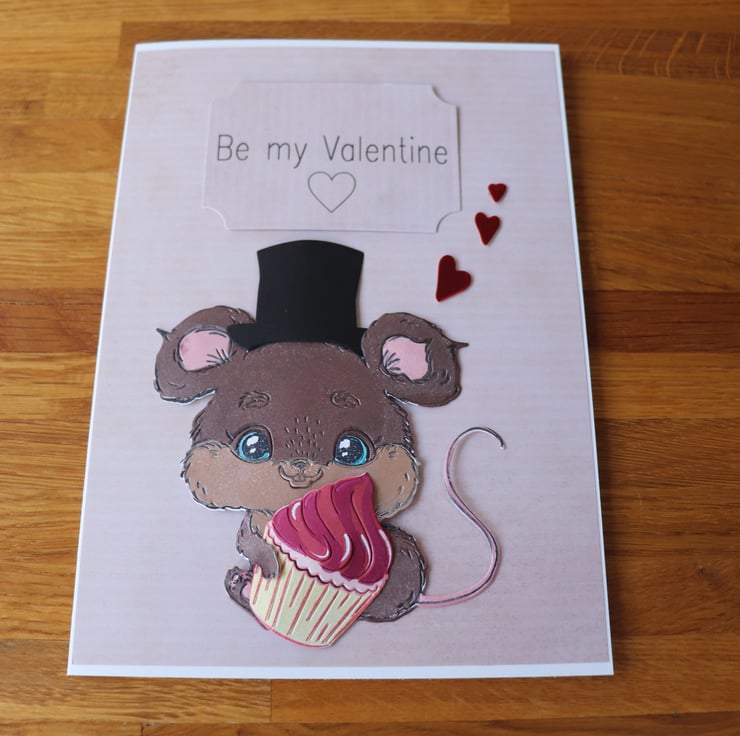 I have used inks to colour the mouse and cupcake, the card is blank inside for your special sentiment