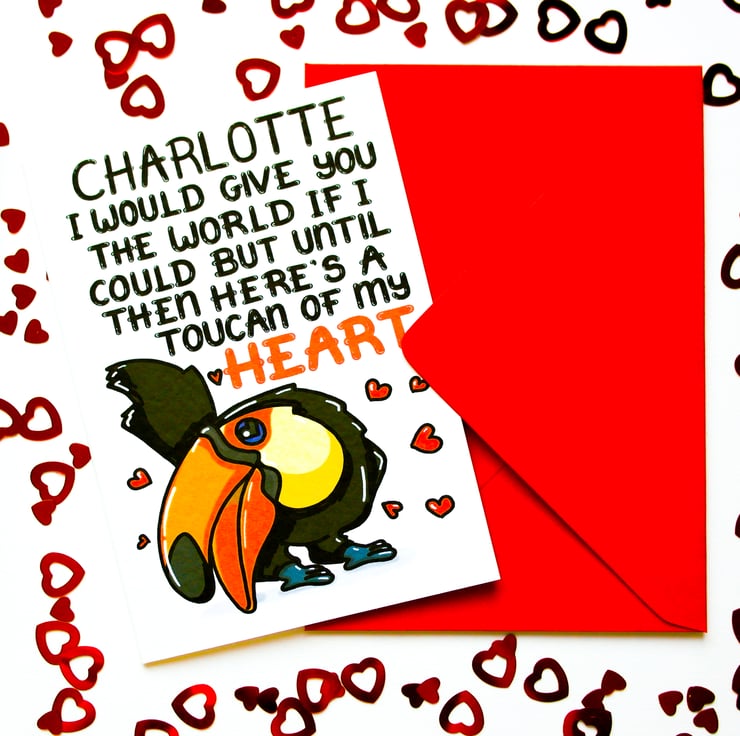 Personalised Toucan Birthday, Anniversary, Valentine's or Just Because Card - Add Recipients Name