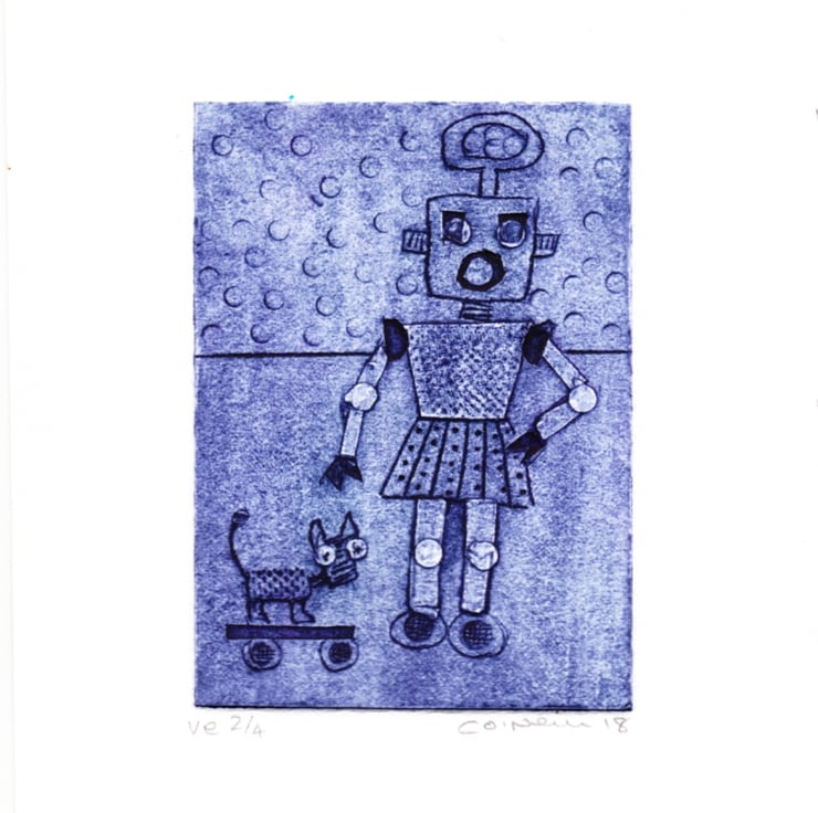 As a child I was fascinated by those toy dogs on wheels. If a robot was going to have a pet it would have to be a robotic dog on wheels. I have named him Robot 2.4 as that his edition number. It also sounds a little bit science fiction.