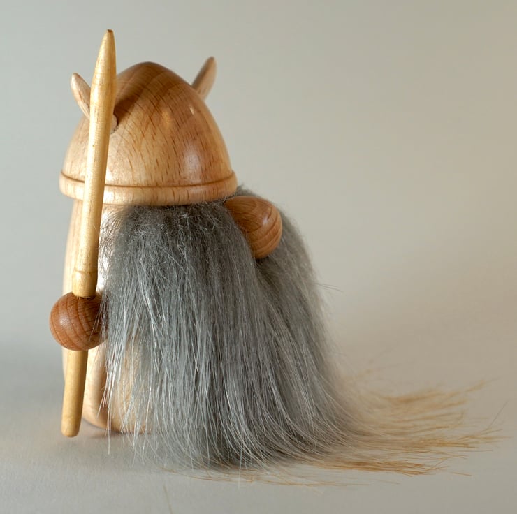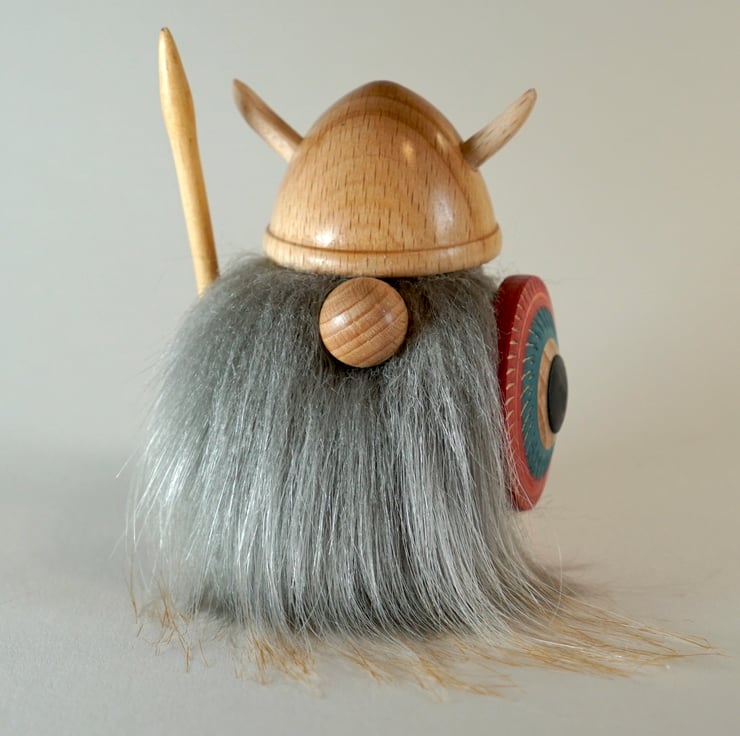 Wood turned Nordic viking Gonk gnome. Standing proud at 8.5 cm tall. I’ve modified his horns and shield to add a splash of colour. His beard is faux fur. He would make a great gift ,anniversary or special occasion present. Free postage is included.