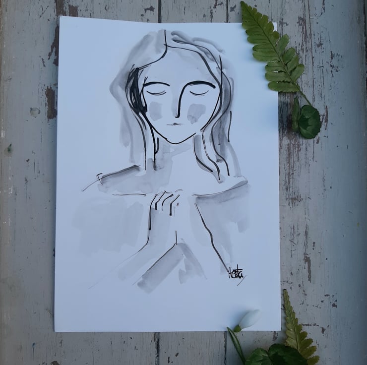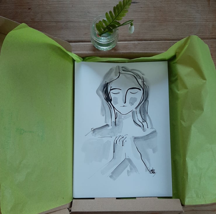 An original A5 drawing is on smooth heavyweight paper. This thoughtful ink drawing made with reeds collected from a local wetlands. Signed and unframed. Comes in a flat box and a biodegradable bag. A contemporary one off .