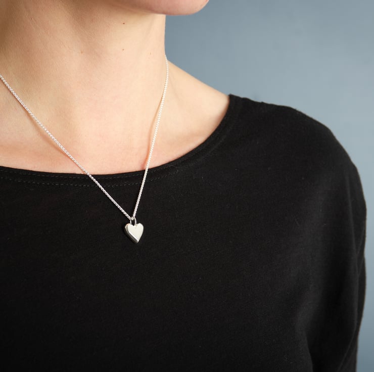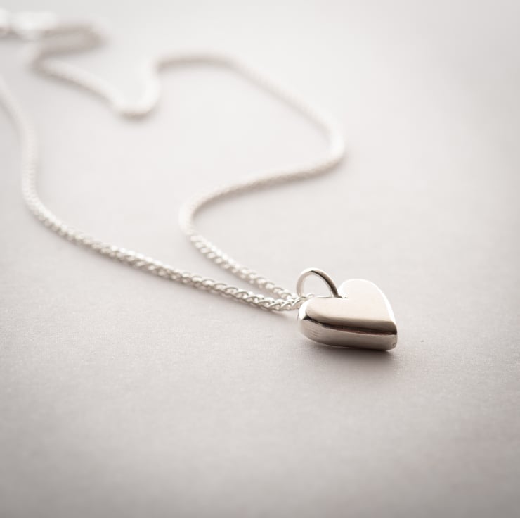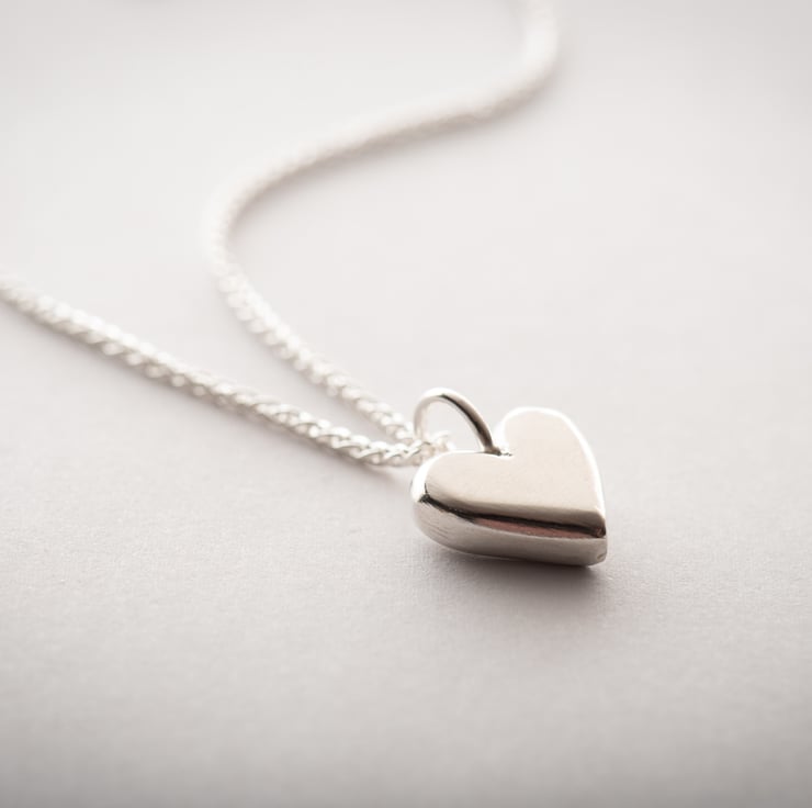 This sterling silver heart pendant was made using the method of lost-wax casting. I carved the heart shape by hand into jewellers wax, and it is then cast into solid silver- the original wax carving is melted in the process, so this pendant is completely unique.