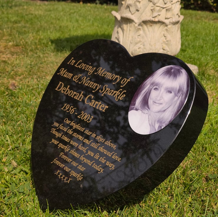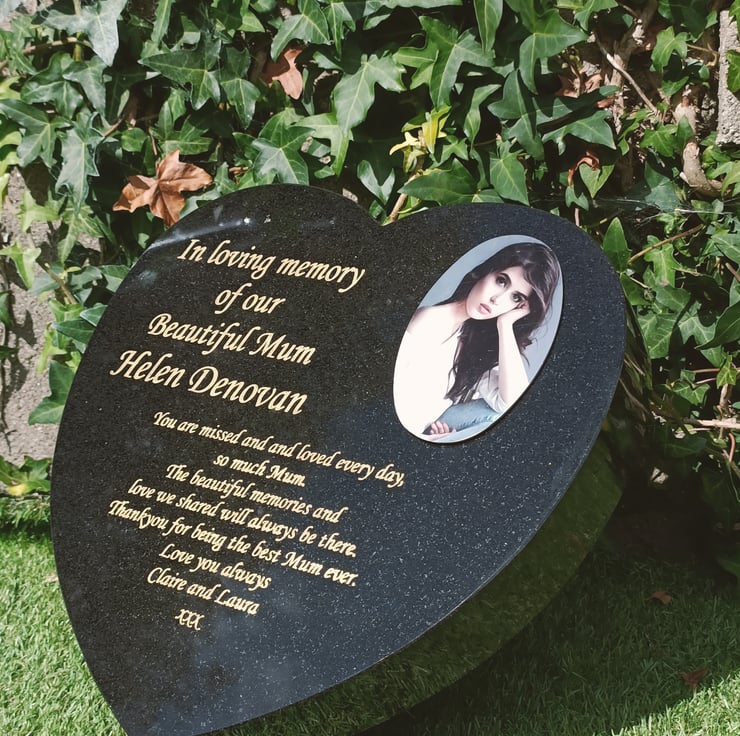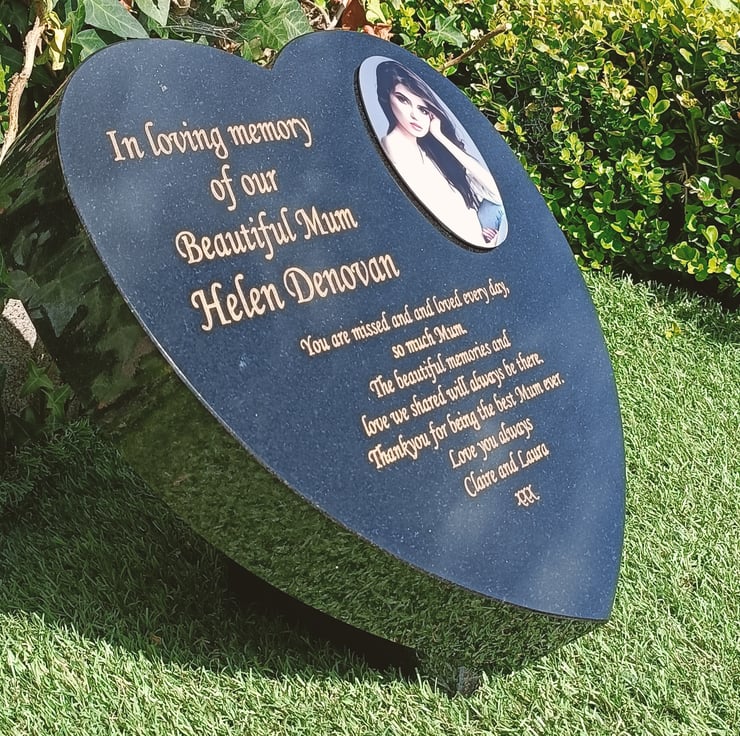 Heart Shaped Solid Granite Engraved Personalised Black Granite Memorial Grave Plaque (Price includes personalisation)