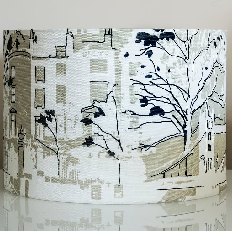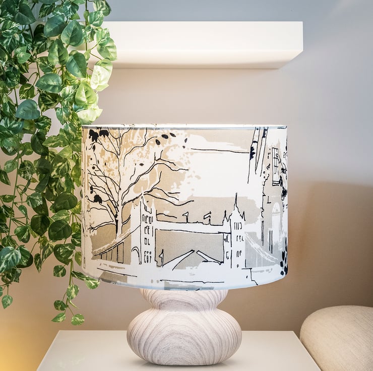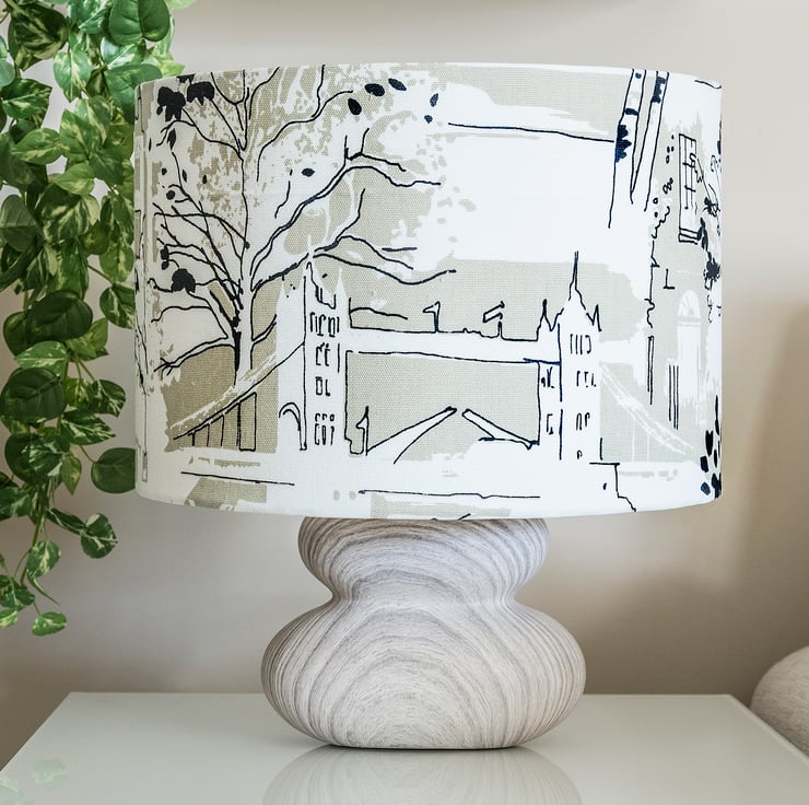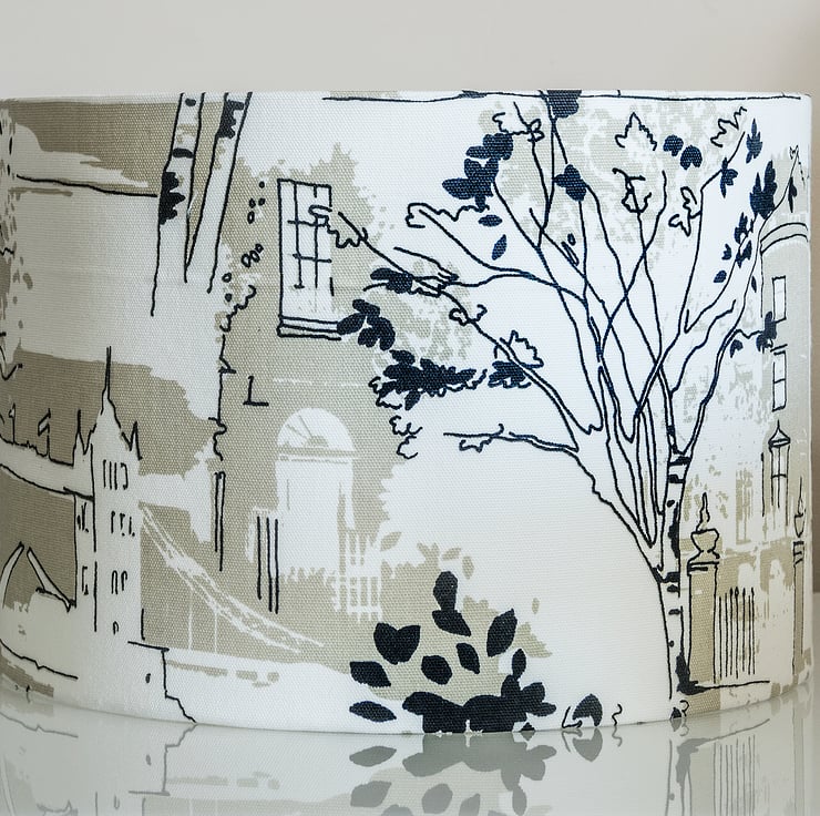 A lovely round lampshade suitable for a table lamp or ceiling light. The neutral background of the fabric will fit easily into any home decor and is the perfect housewarming gift for any Londoner or London lover and would make a lovely souvenir of a stay in the capital.