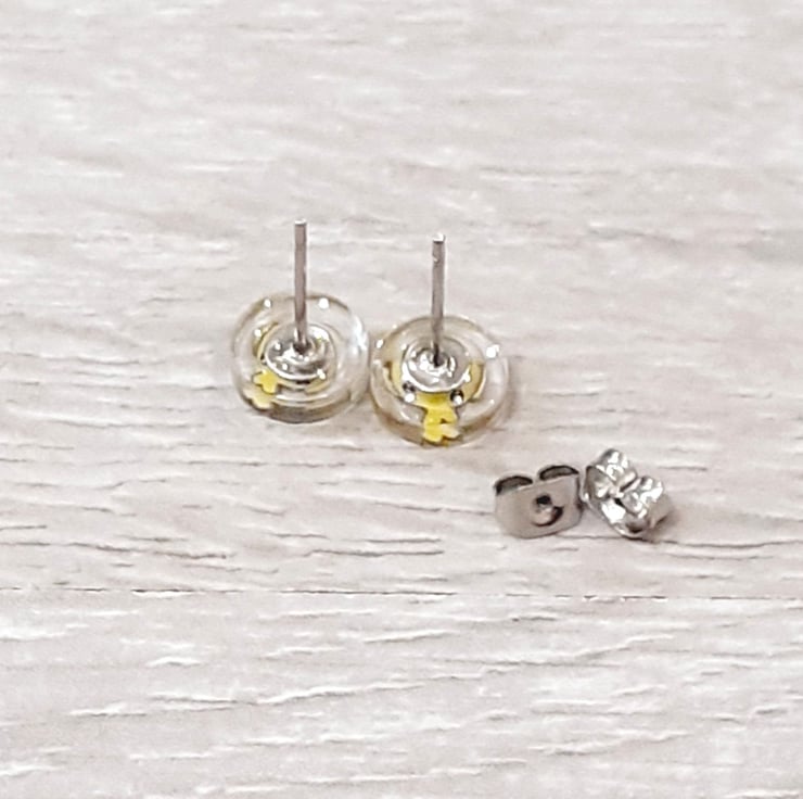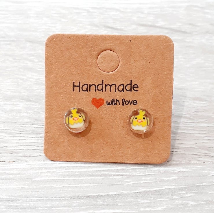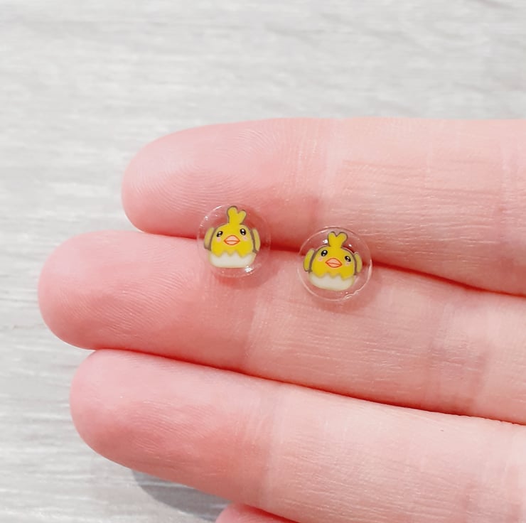 These cute little Easter chick stud earrings are made using, non-yellowing resin and polymer clay. Earrings posts and earring backs are both made from stainless steel.