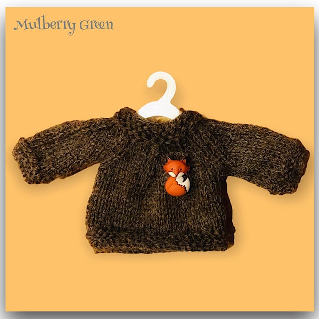 A lovely soft brown Aran jumped, to fit the Mulberry Green characters. The jumper is hand knitted and is decorated with a cute little fox.