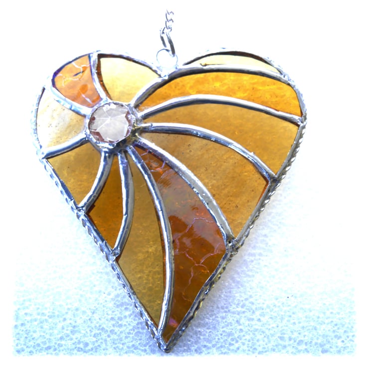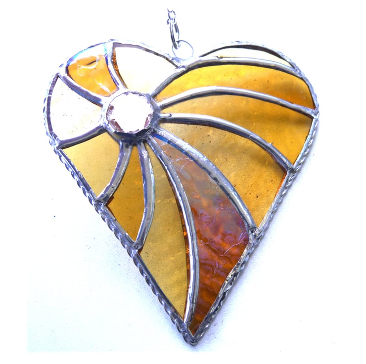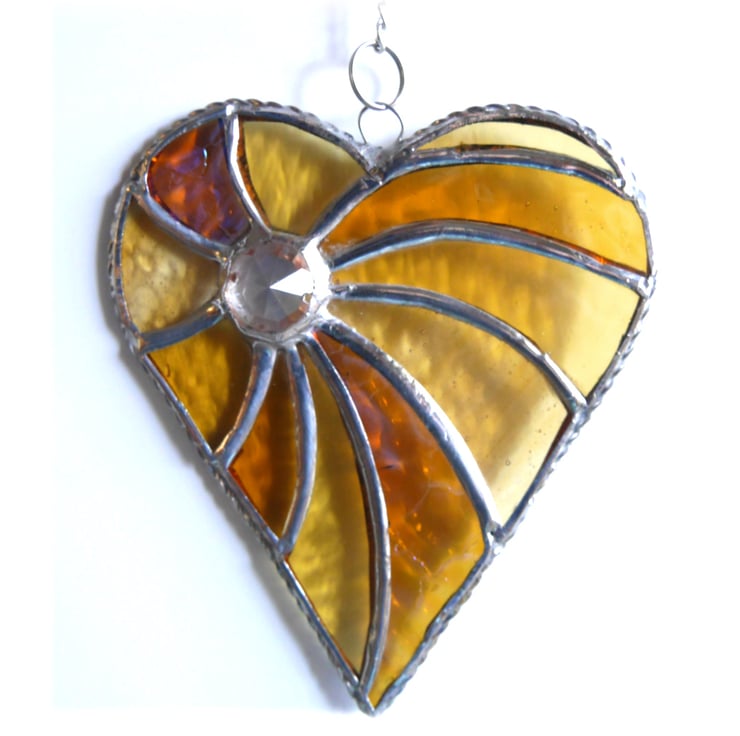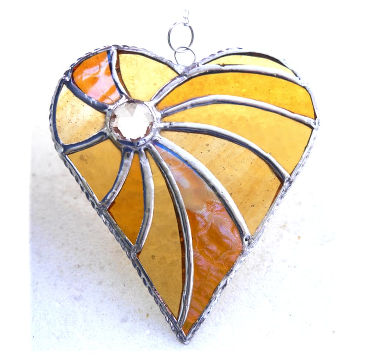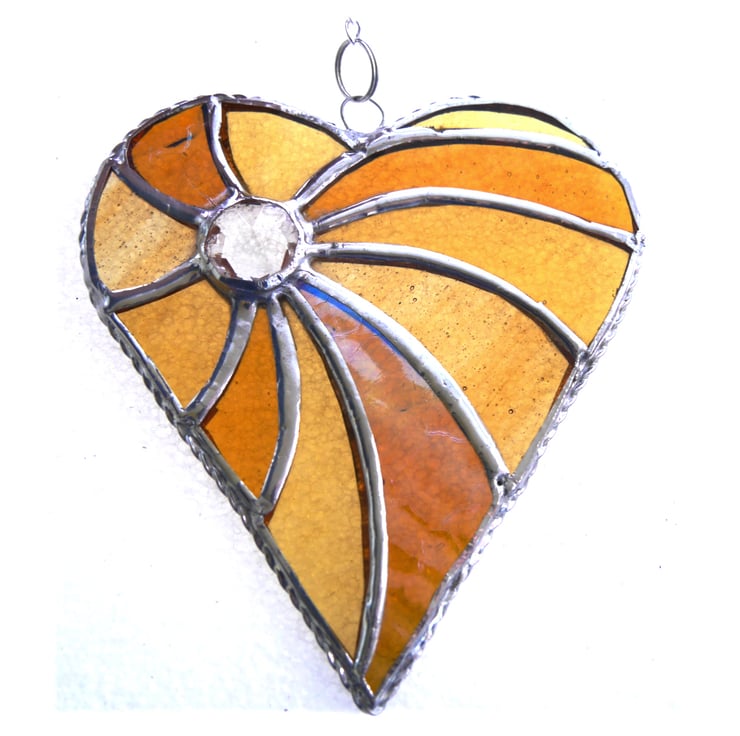 I've made the heart from 5 different types and shades of golden glass swirling out from a lovely gsparkling crystal.