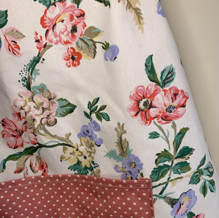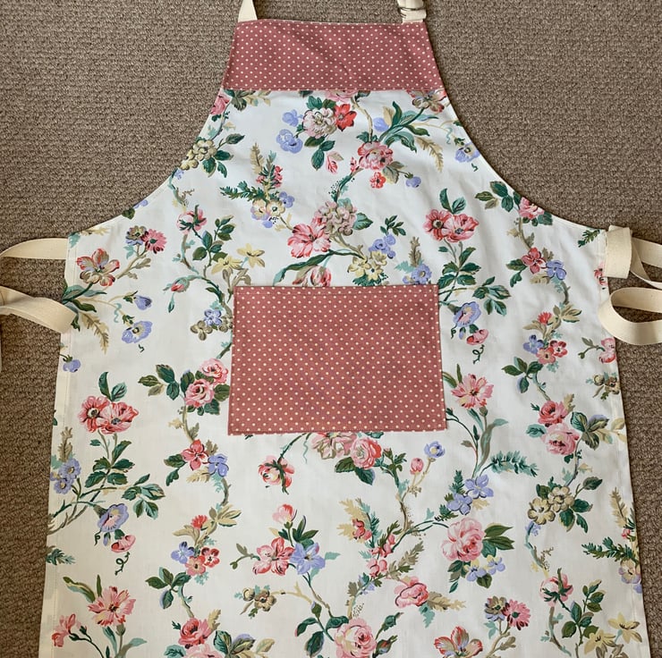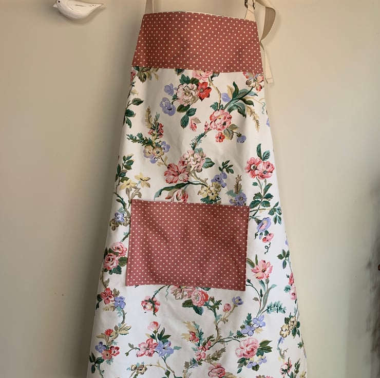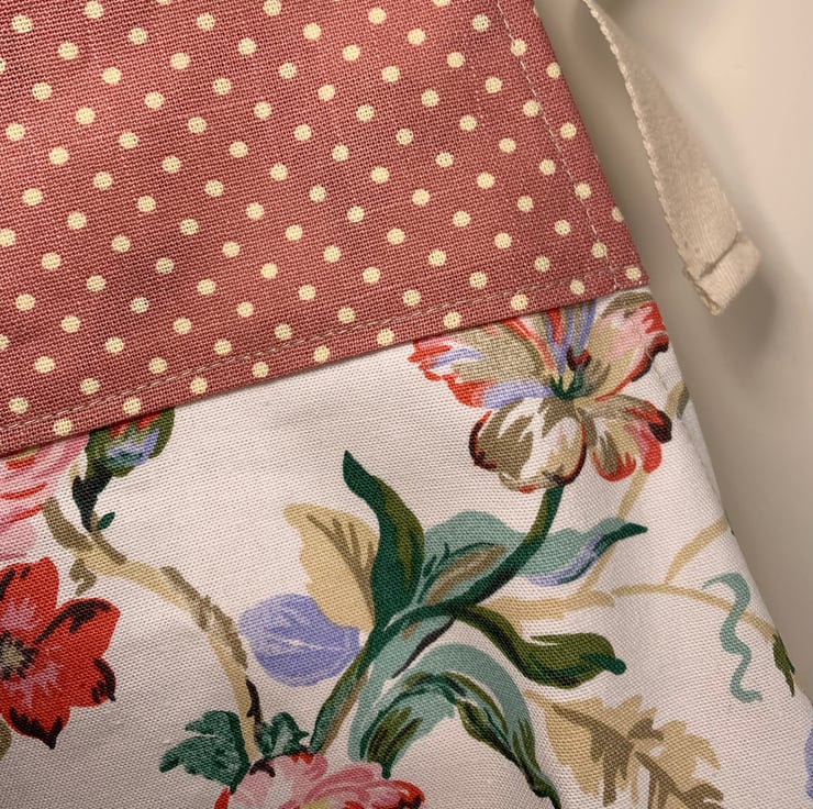 One of a kind apron made from unused Laura Ashley cotton from 1990 and pretty pink spotted cotton.