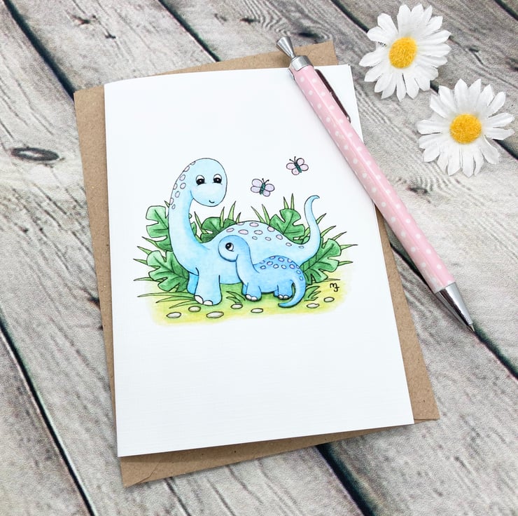 Mother & Baby Dinosaurs Card - Blank - Any Occasion - Birthday