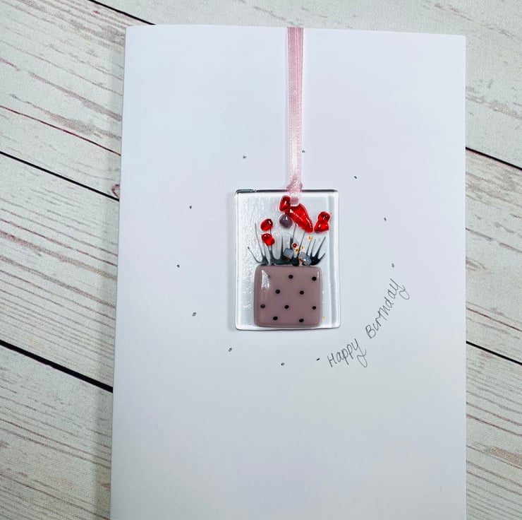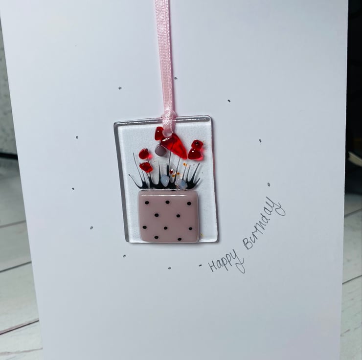 Gorgeous pot of flowers to last forever . A lovely way of giving a small token gift with a card. Once the birthday card is finished with simply detach and hang anywhere you wish .