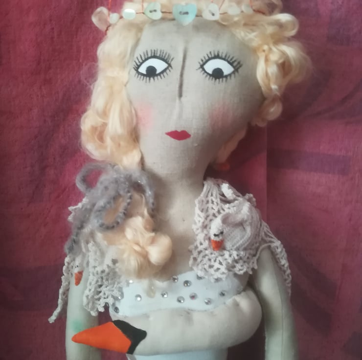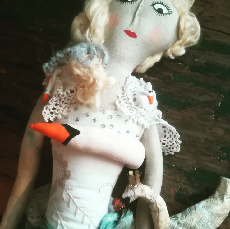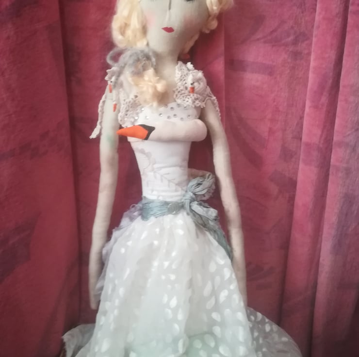 She is made using vintage fabrics and linens including some of my collection I was gifted from an old theatre and circus seamstress.