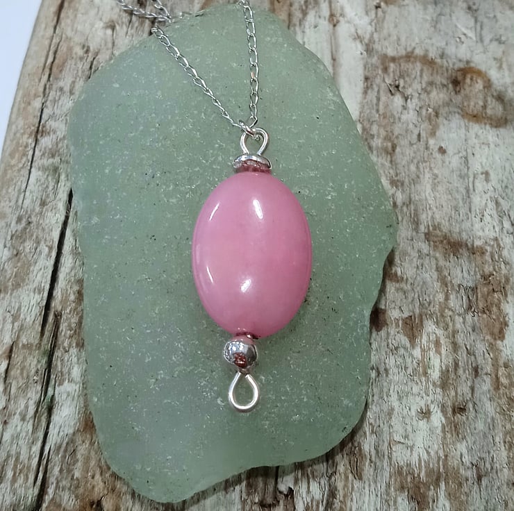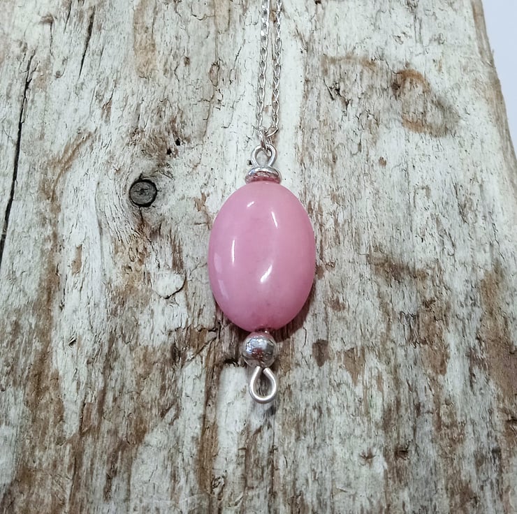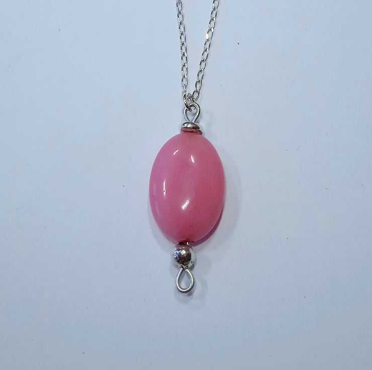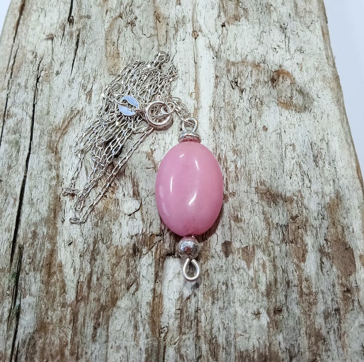 I have created this beautiful pendant featuring a pink morganite bead measuring approximately 18 mm x 12.5 mm and I have combined this with beads I have handmade from molten sterling silver. The sterling silver beads are solid with the flatter bead measuring approximately 4.2 - 4.6 mm across and the round one 4 mm across. These sterling silver beads have irregularities in keeping with the making process which are part of the handmade charm.