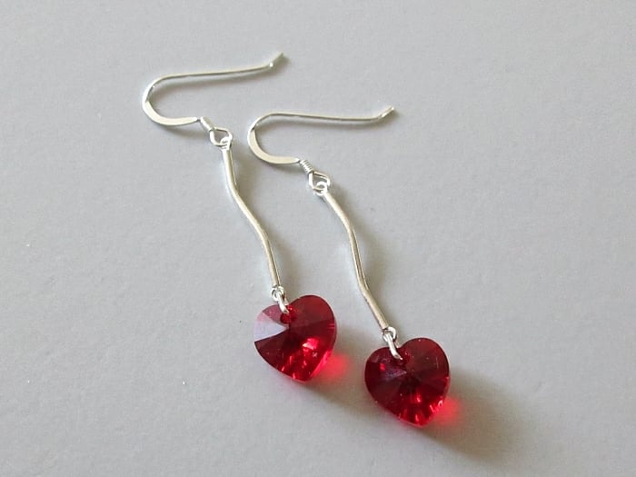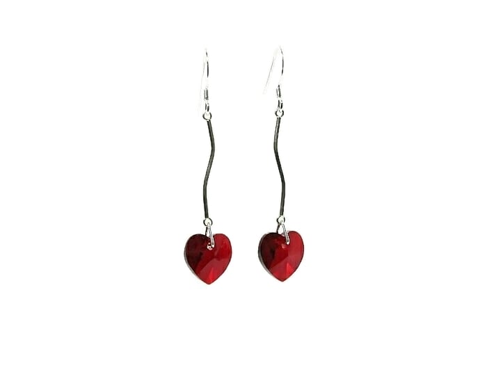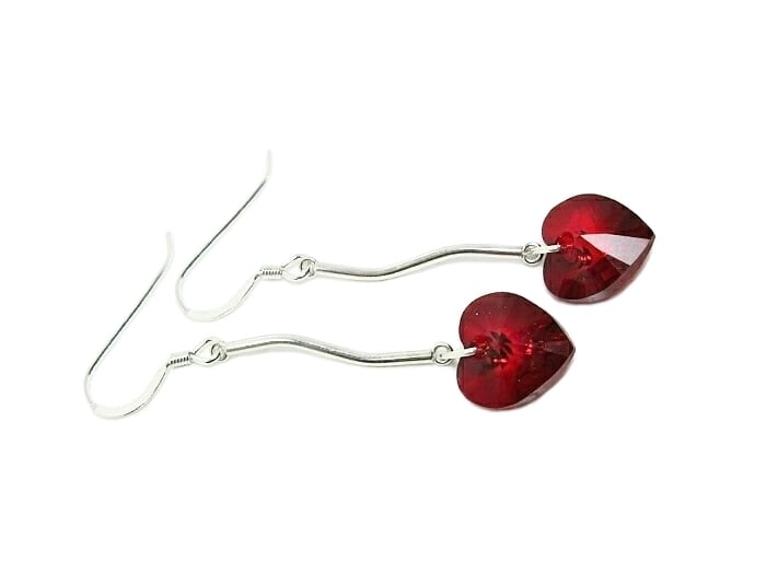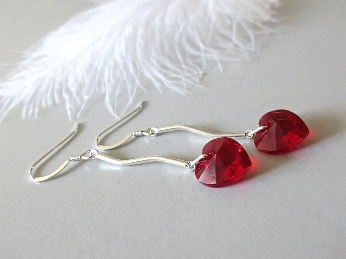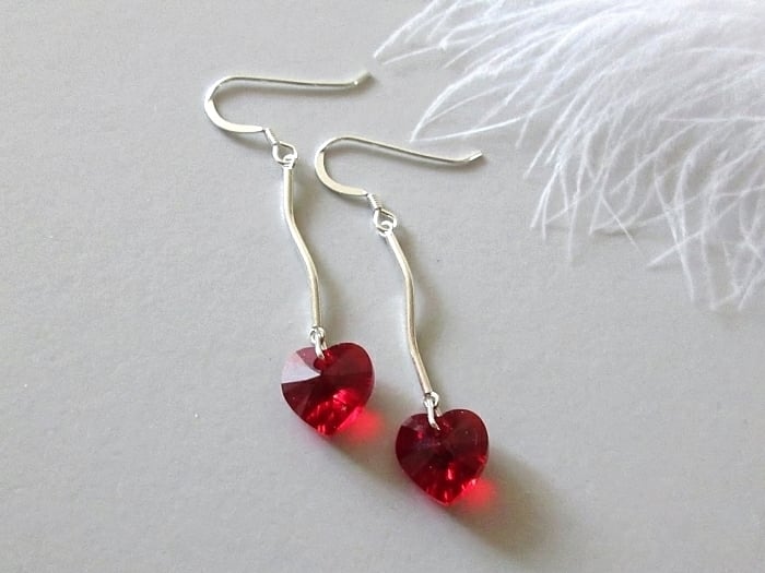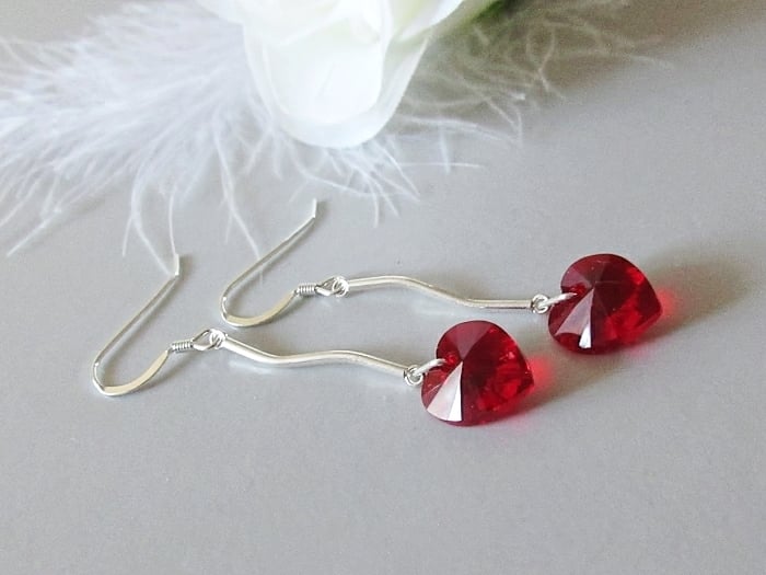 I handmade these elegant earrings with red heart crystals from Austria & attached them to solid Sterling Silver curved bars. With hearts being a symbol of love, why not show her how much you care? Especially on Valentine's Day, Mother's Day, her birthday or as a surprise gift.