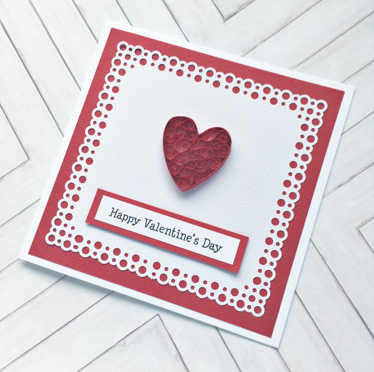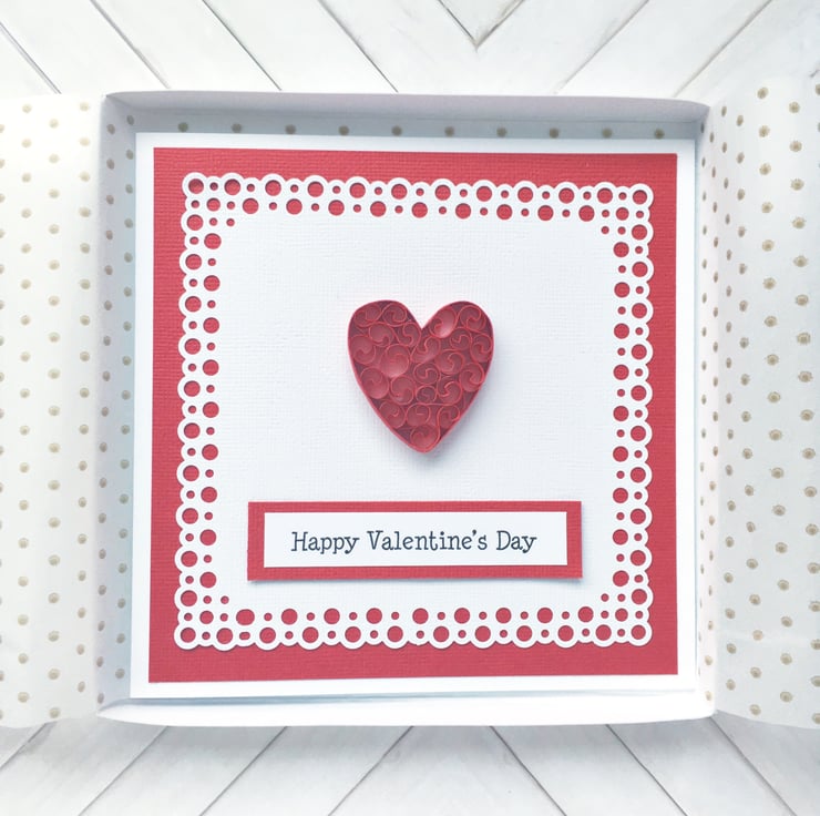 This adorable Valentine’s Day card has a quilled heart in the centre and a gift box is also available for an extra special touch.