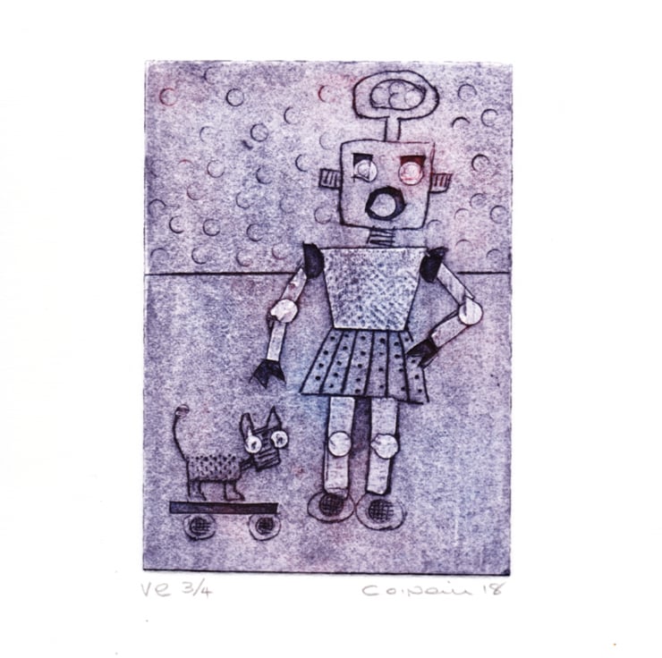 Little Robot 3.4.  - Collagraph Print - original art - Made in Yorkshire