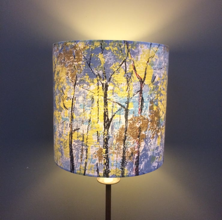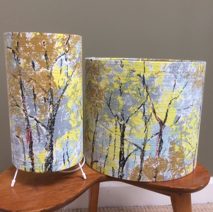 STUNNING GREY Woodland Forest Retro Barkcloth VIntage Fabric Lampshade