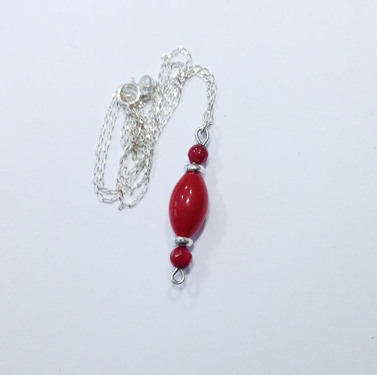 I have created this beautiful pendant featuring a red topaz bead measuring approximately 13 mm x 8 mm and I have combined this with 4 -4.5 mm faceted red topaz beads and beads I have handmade from molten sterling silver. The sterling silver beads are solid and flattened measuring approximately 4.5 mm across. These sterling silver beads have irregularities in keeping with the making process which are part of the handmade charm.